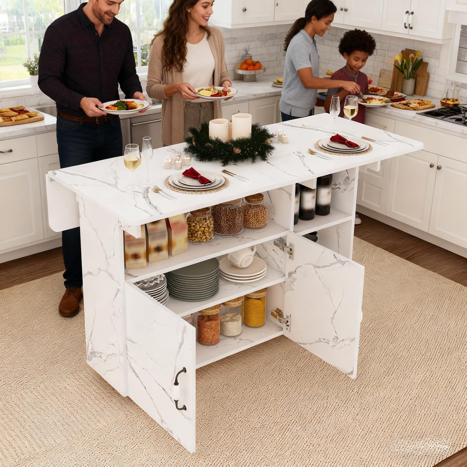 Transform your small kitchen with this versatile 3-in-1 foldable kitchen island cart. Designed for apartments and compact spaces, this mobile storage solution adapts from a slim side table to a full dining surface while keeping your essentials organized.