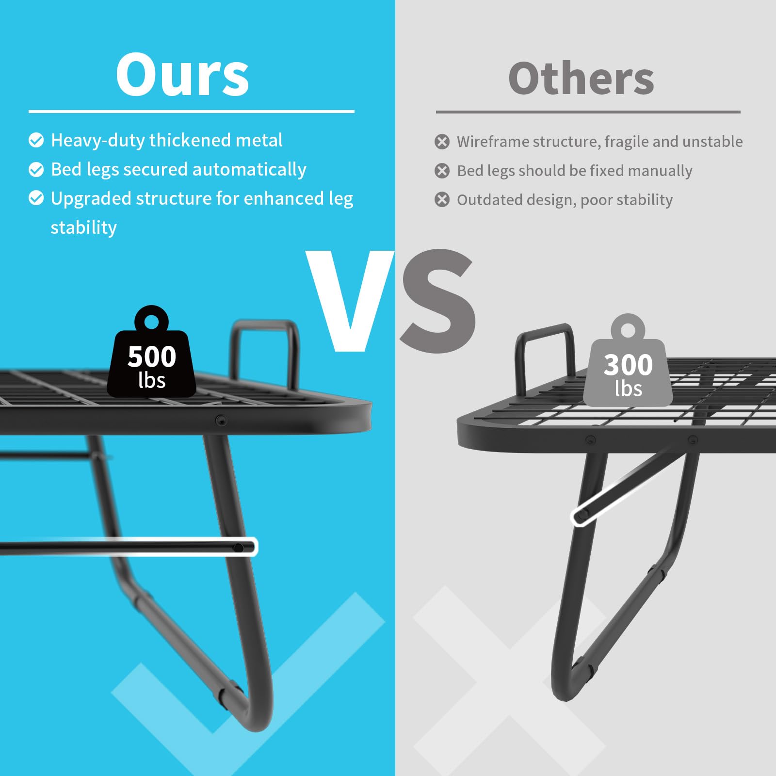 This folding bed features robust construction with premium thickened metal frame and smooth skin-feeling fabric, offering a 500 lbs load capacity. The sturdy structure ensures the bed will not shake or squeak during use.