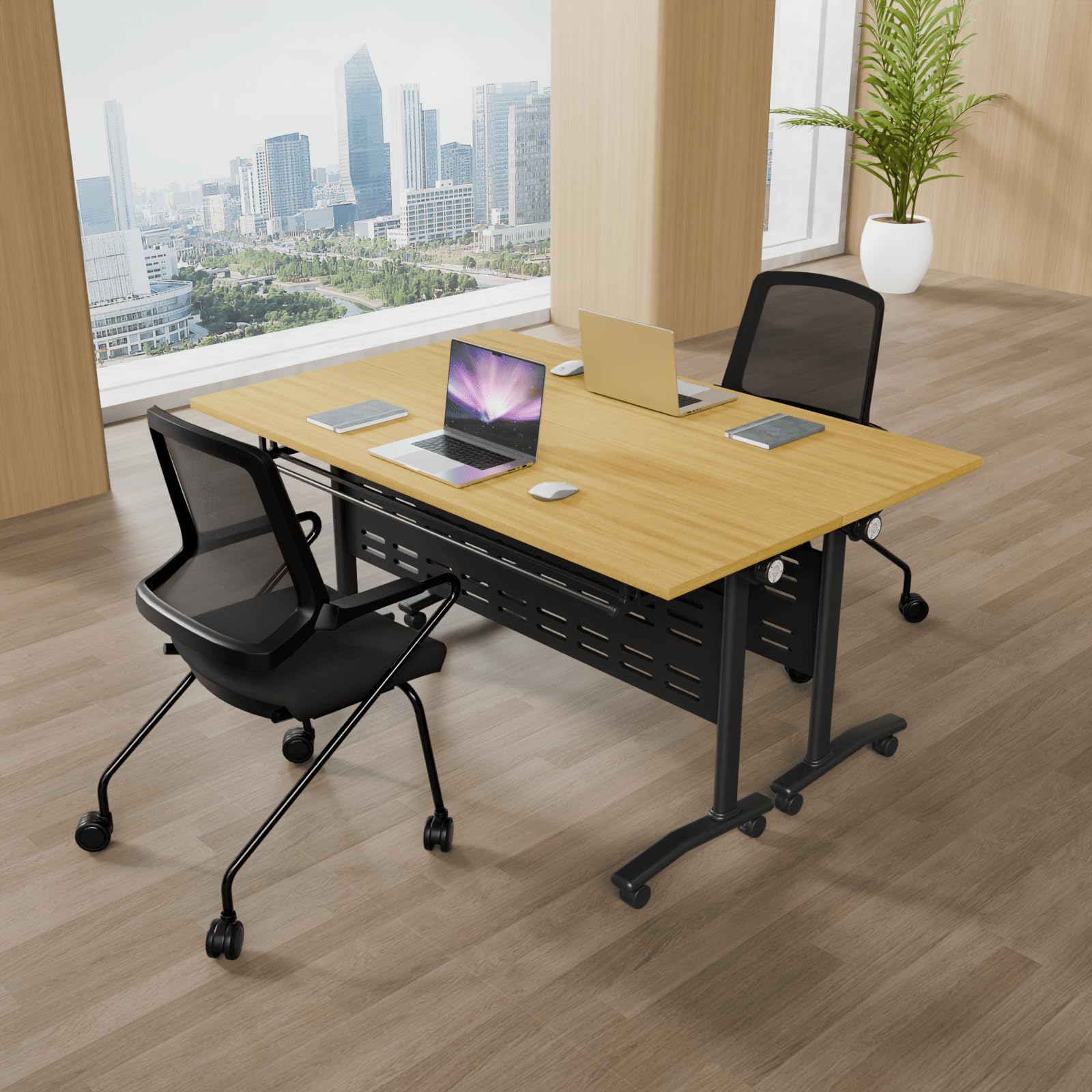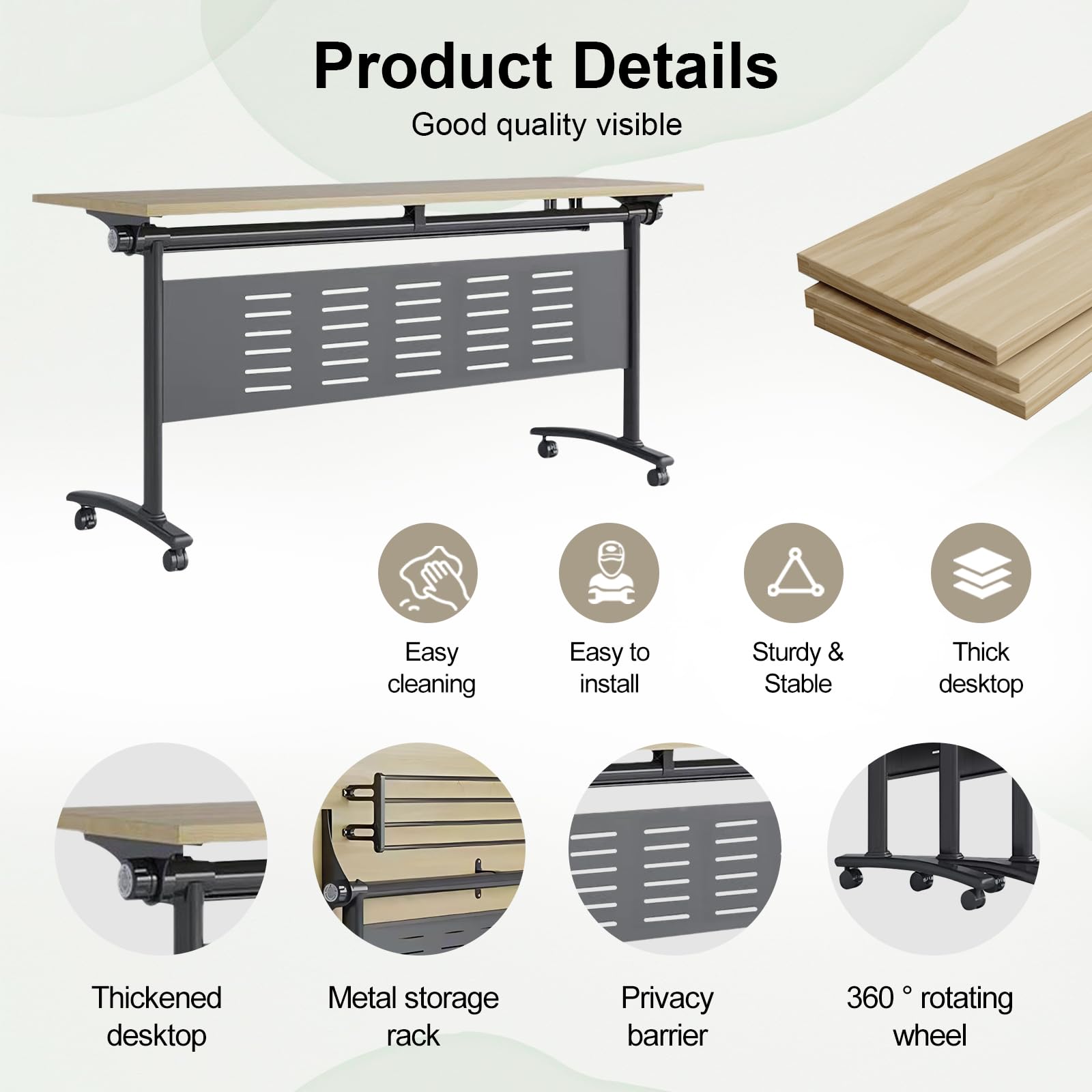 - Flip-Top Folding Design: Easily folds and stacks for compact storage, saving valuable office space when not in use