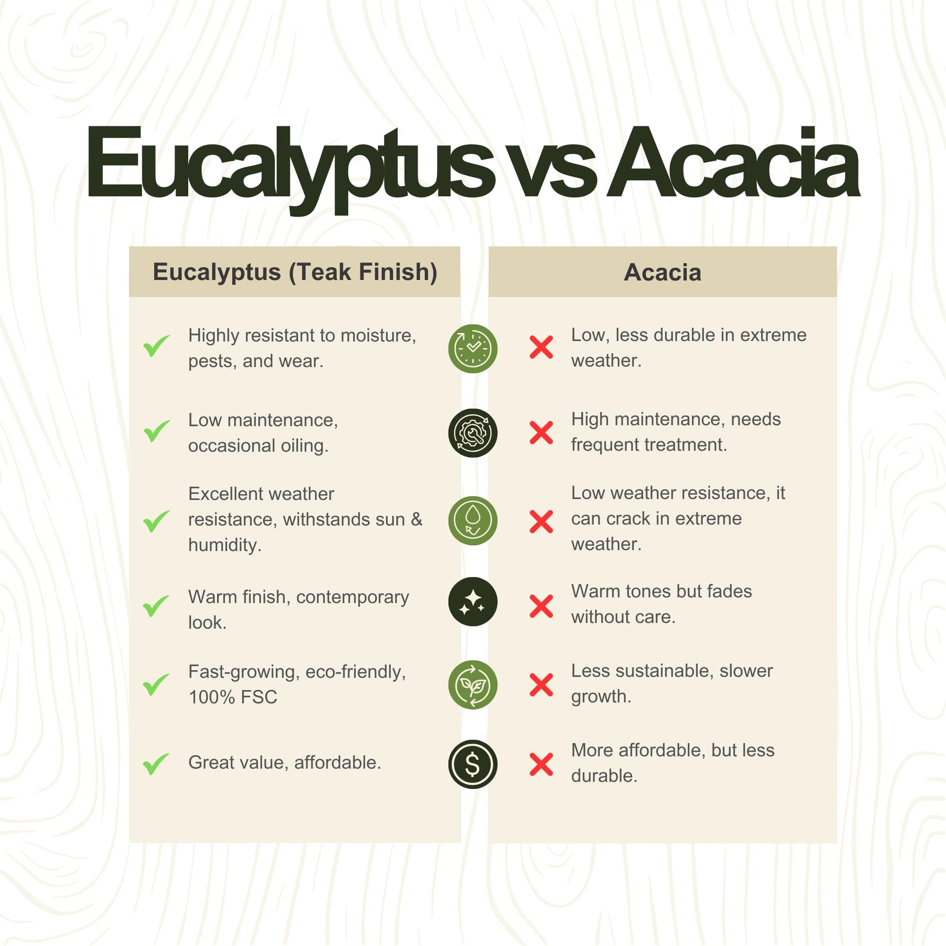- Premium Construction: Solid Eucalyptus Grandis wood with teak finish for timeless elegance