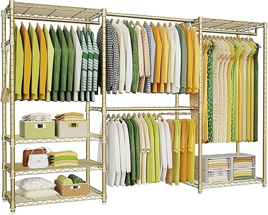 This heavy-duty freestanding closet organizer provides exceptional storage capacity with 6 shelves and 4 adjustable hanger rods. The expandable design allows you to customize the length from 70 to 88.2 inches to fit your space perfectly.