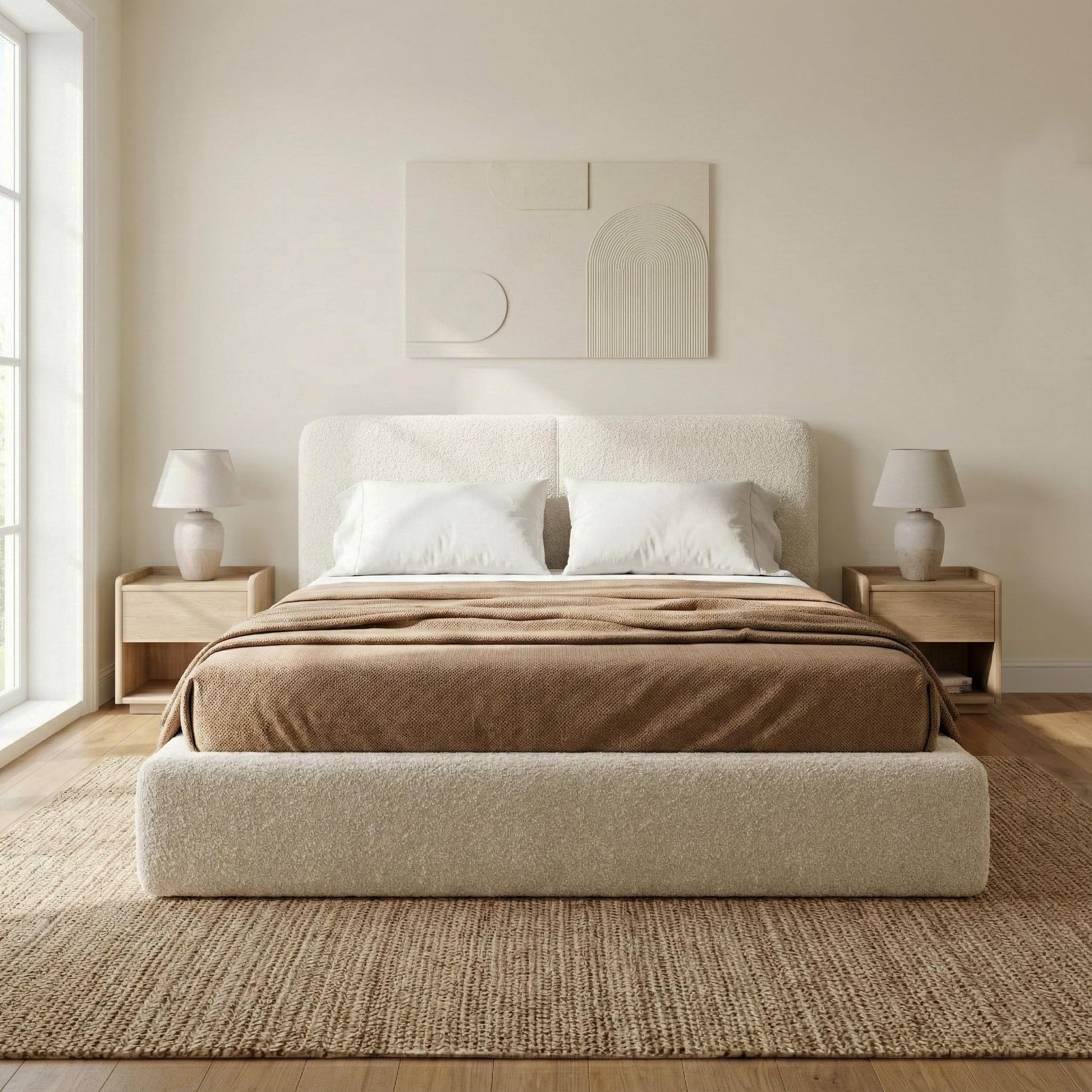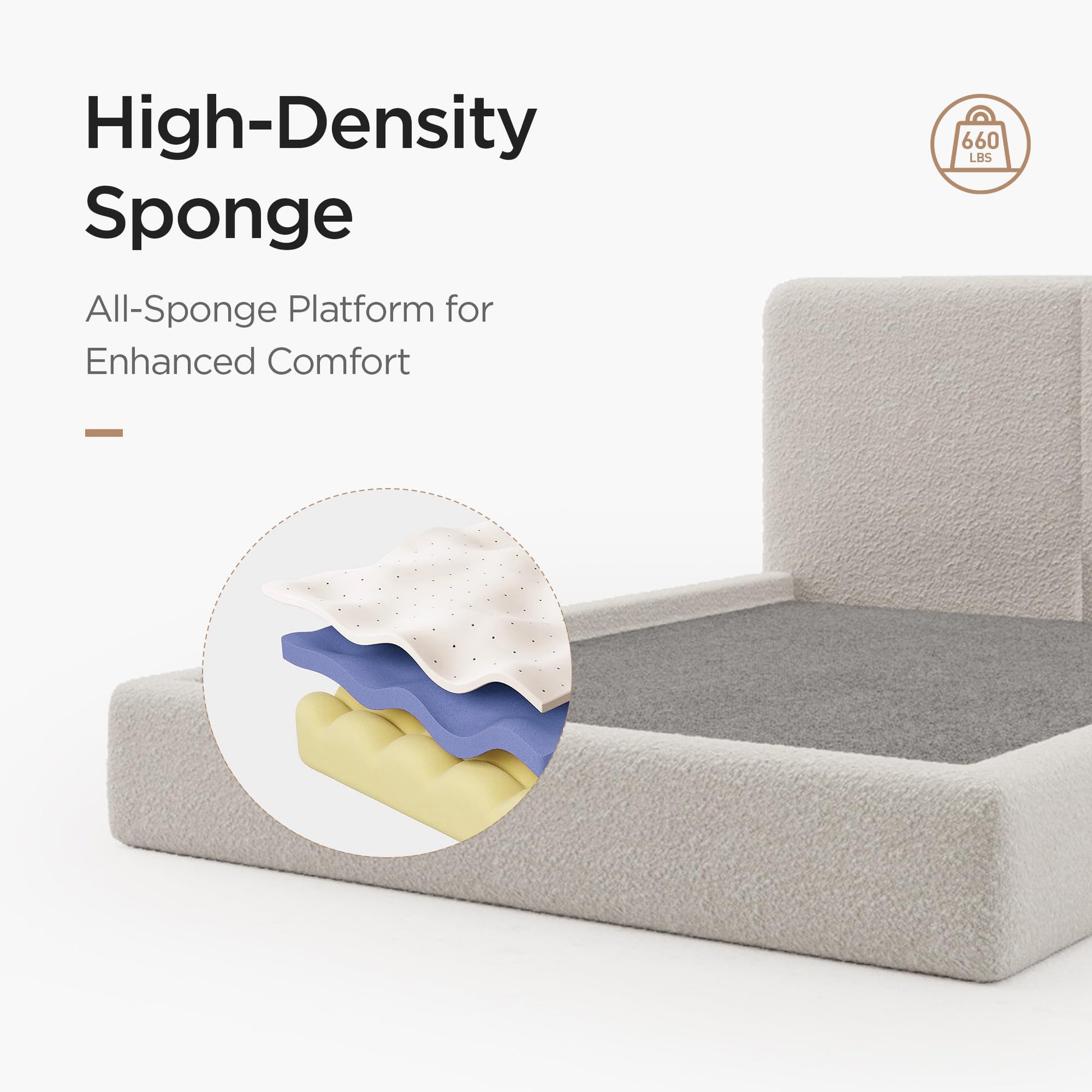 Experience ultimate comfort and modern elegance with this cloud-like platform bed frame. Featuring premium boucle upholstered fabric and high-density foam construction, this bed frame transforms your bedroom into a luxurious retreat.