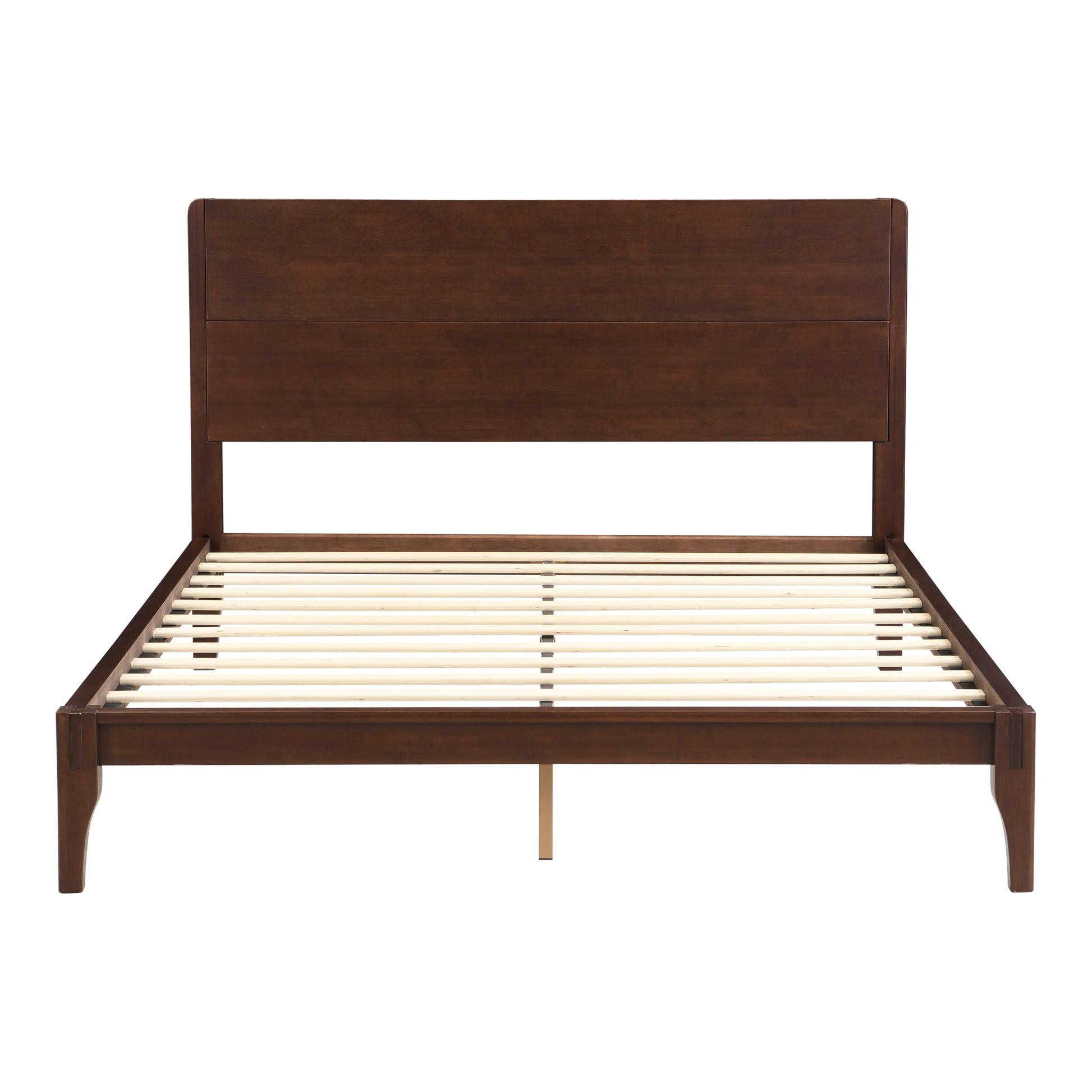 Elevate your bedroom with this mid-century modern bamboo platform bed featuring a tall 42.5-inch headboard. Crafted from sustainable bamboo with natural textures and clean contours, this full-size bed frame combines rustic charm with contemporary design.