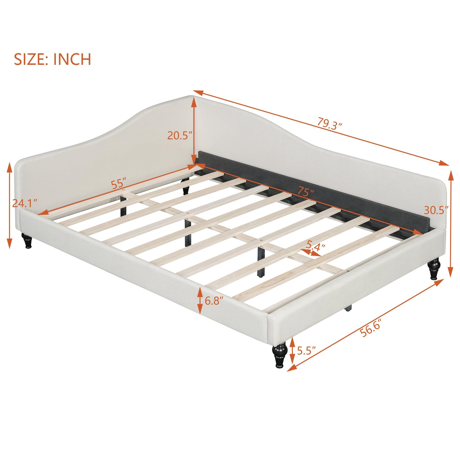 Full Size Linen Daybed with Wooden Legs