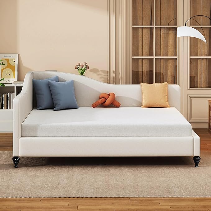 This elegant full-size daybed combines comfort and style, perfect for bedrooms, living rooms, or guest spaces. The upholstered linen fabric and sturdy wooden legs create a sophisticated look that complements any decor.