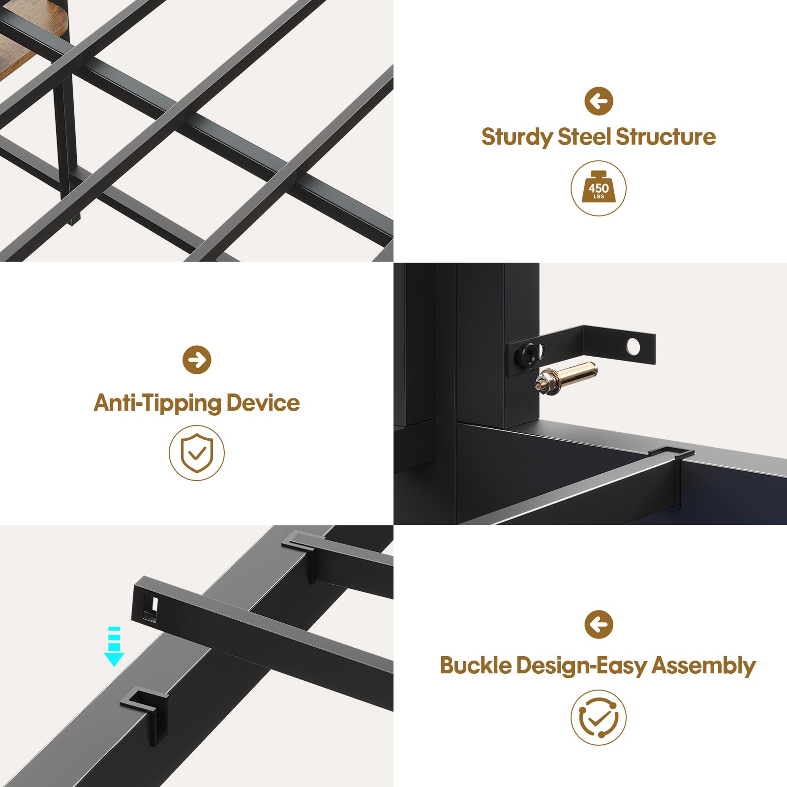 - Sturdy Construction: Heavy-duty square metal frame with closely packed metal slats supports up to 400 lbs on upper bunk