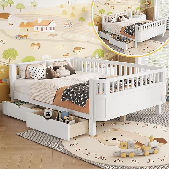 Full Size Montessori Bed Frame with Rails