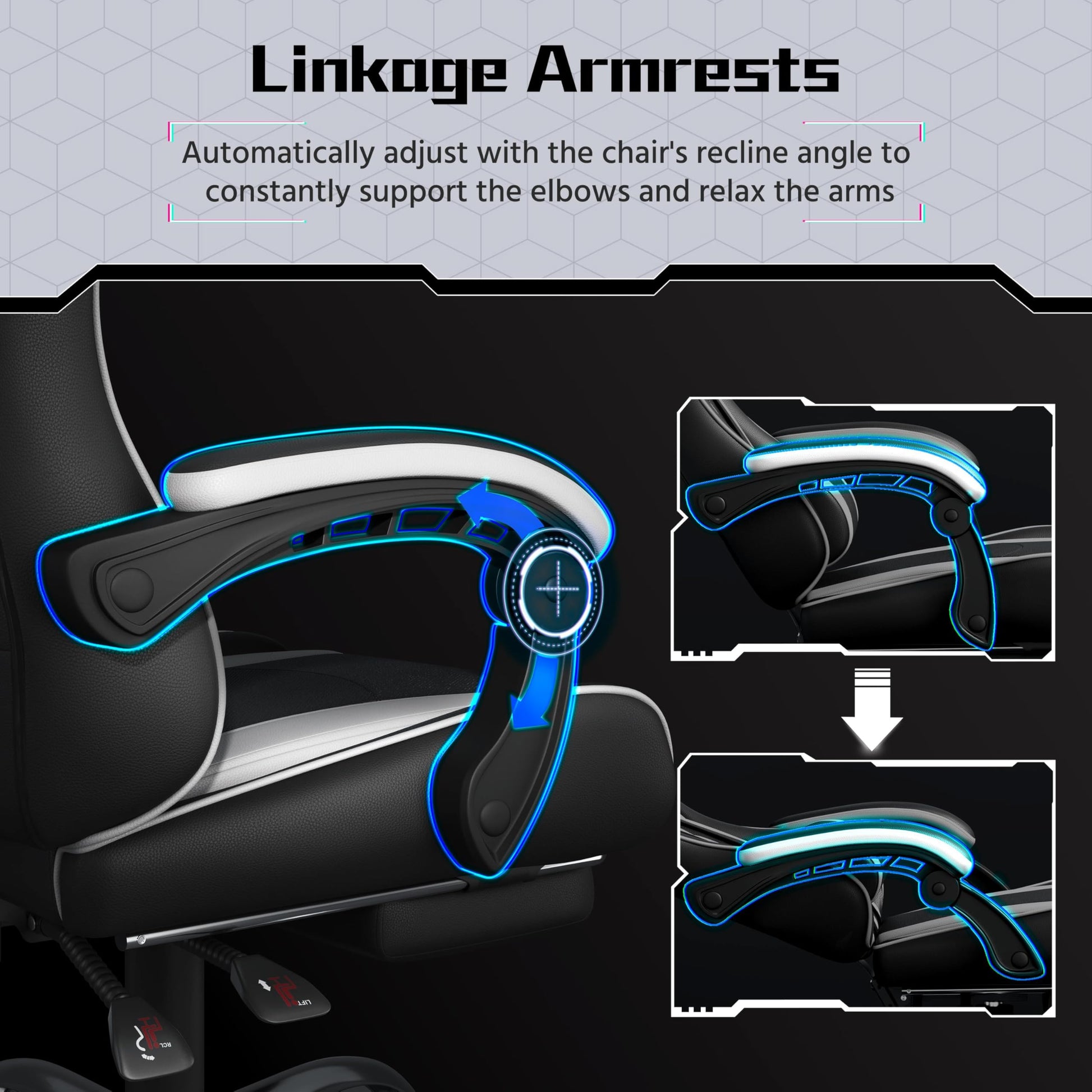 - Linkage Armrests: Armrests move with the backrest for continuous support in any position