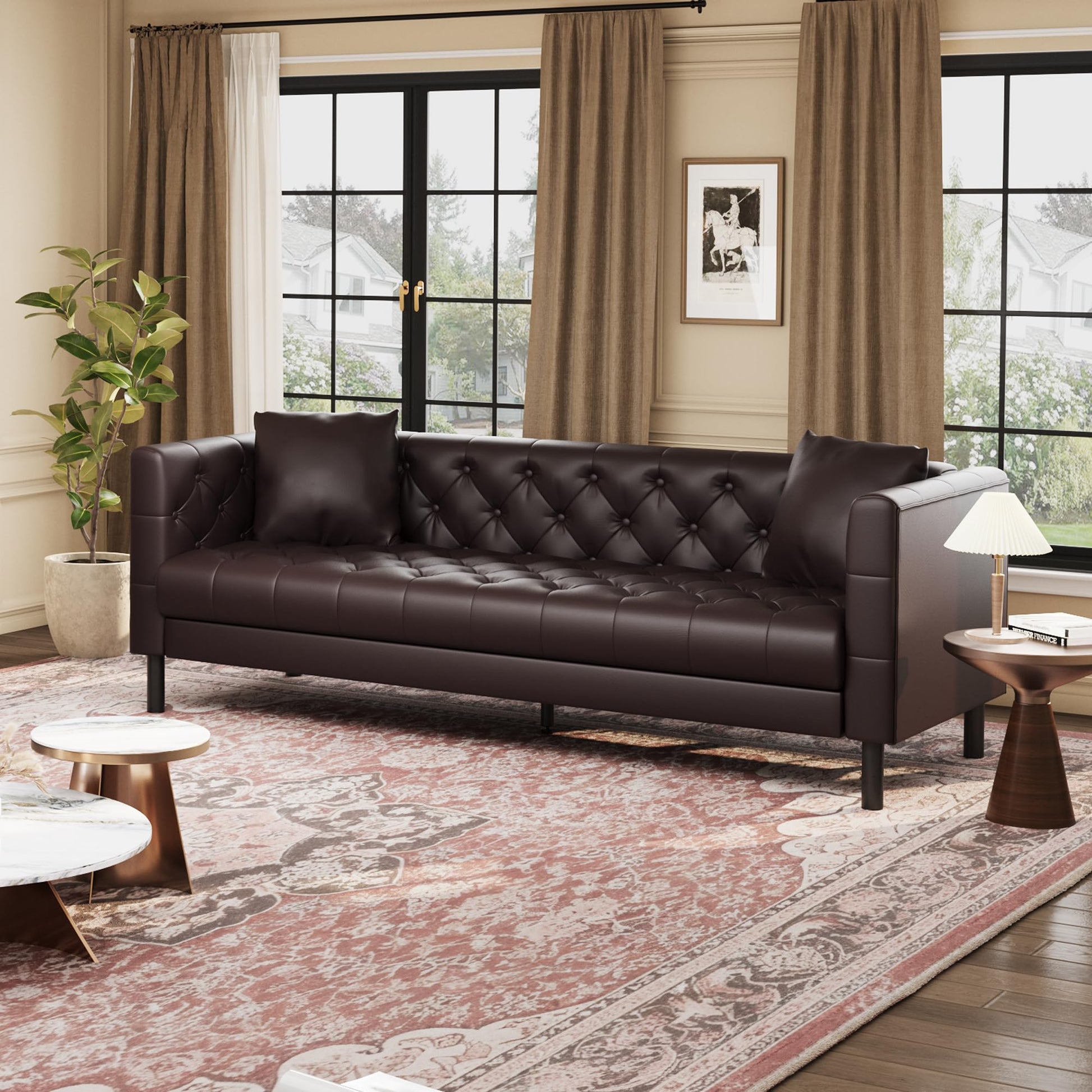 - Classic Chesterfield Luxury: The faux leather sofa features timeless Chesterfield style, stylish button-tufted accents and elegant lines, blending seamlessly into modern or classic living rooms. Its distinctive shape elevates any space, making it the perfect comfy couch for living room ambiance