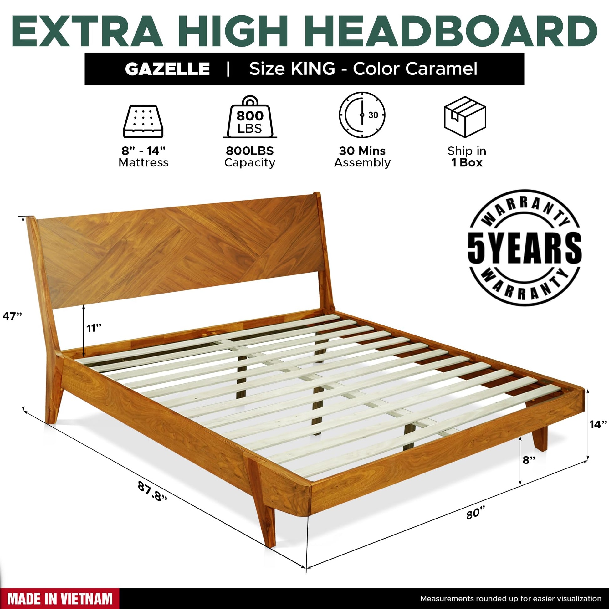 Experience the perfect blend of artistry and functionality with this stunning king size bed frame. Featuring an artistic 41-inch high headboard, this solid wood platform bed brings Art Deco elegance to your bedroom while providing exceptional support and durability.