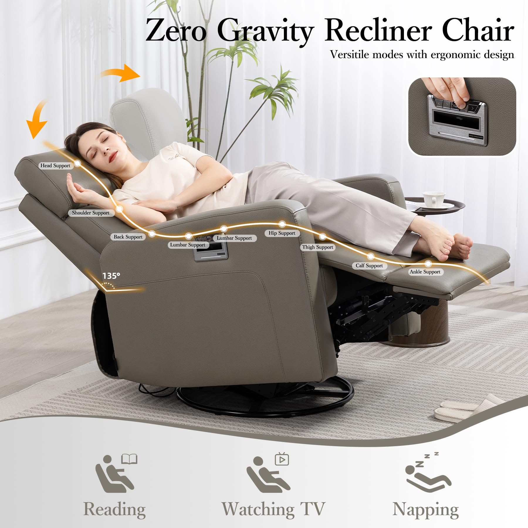 Genuine Leather Power Swivel Recliner with Wireless Charging