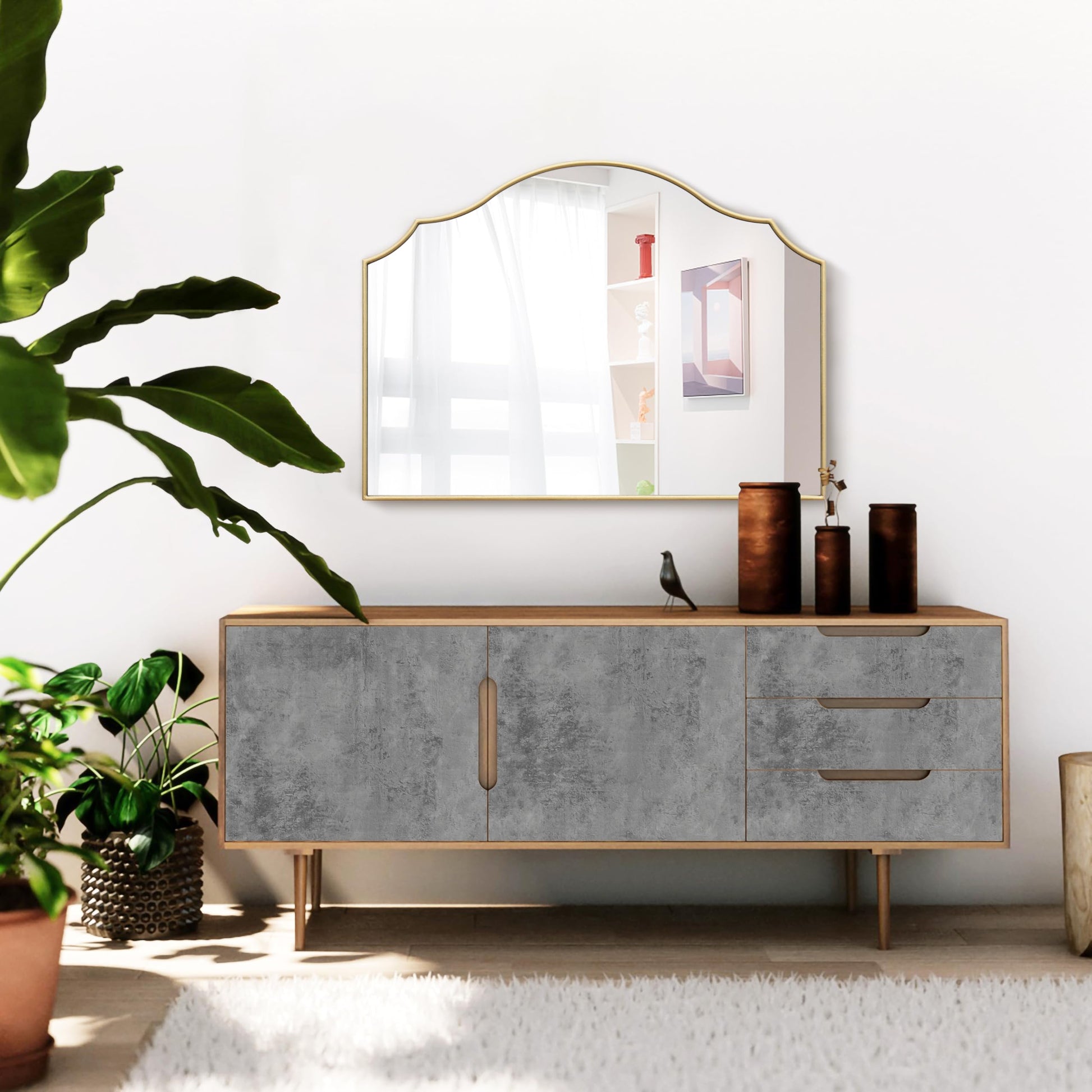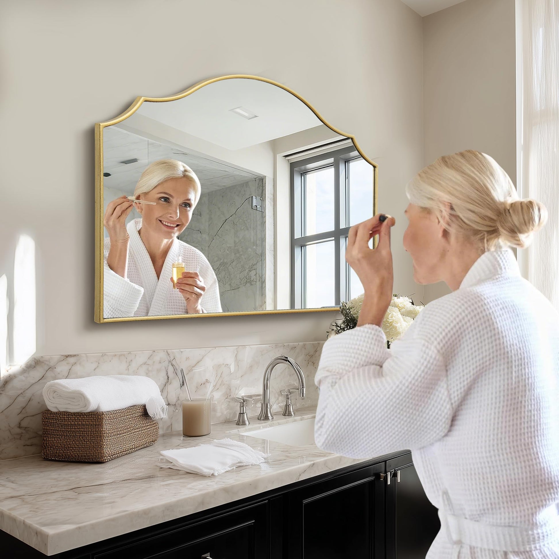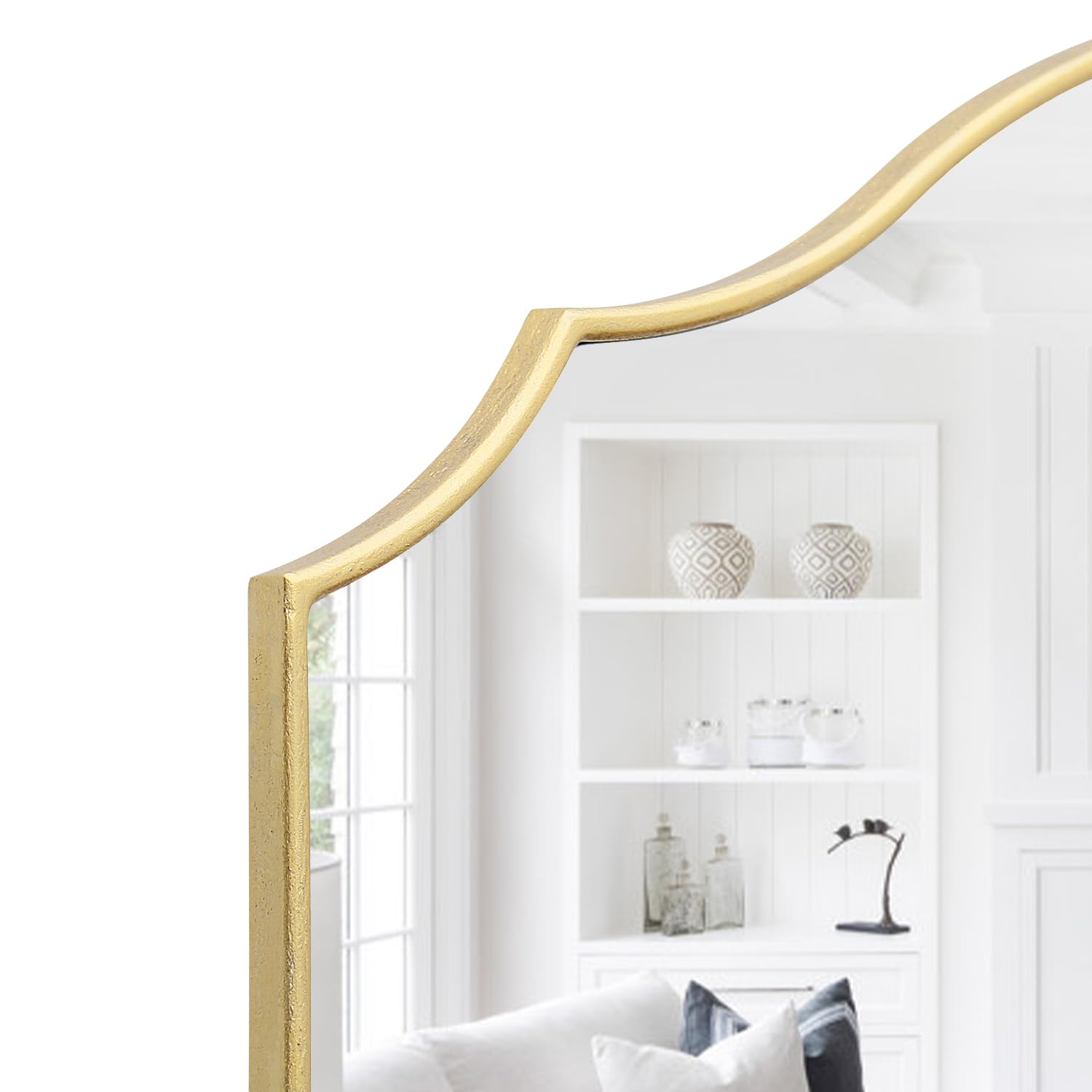 Elevate your space with this stunning scalloped arched mirror featuring a hand-applied gold leaf finish. The refined minimalist design with scalloped round corners brings modern glamour to any interior, making it a perfect focal point for your home.