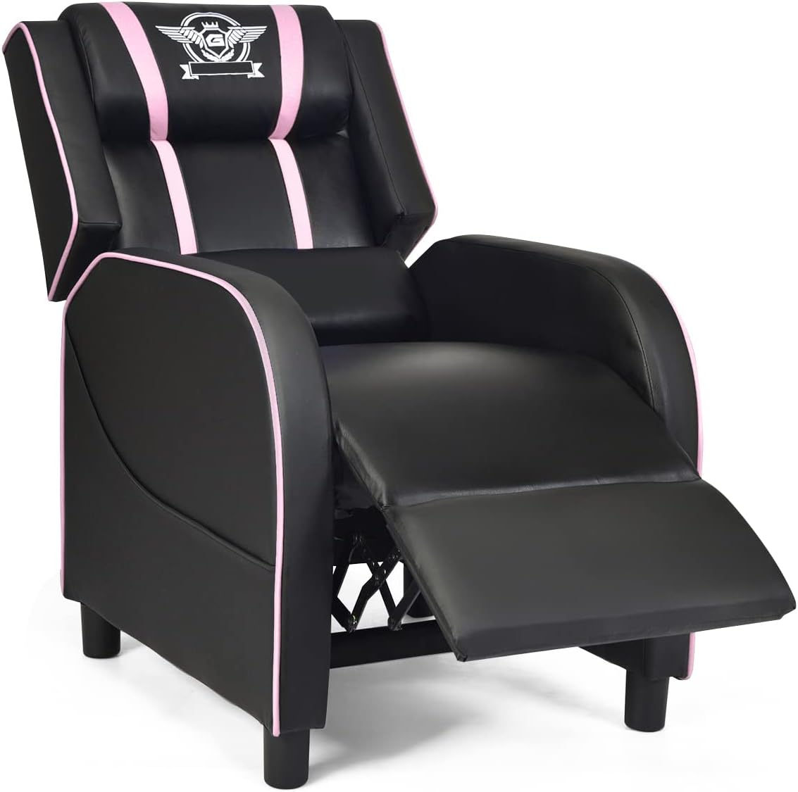- 【Premium Material】Thick cushioned leather recliner with skin-friendly PU surface offers an ultra-comfortable experience and intense gaming time. And the sturdy frame made of laminate and high-quality pine wood ensures durability and long-term use with a maximum load-bearing of 330lbs. Meanwhile, the waterproof leather is easy to clean.