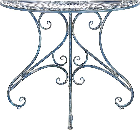 This charming half-round accent table brings Victorian elegance to your outdoor living space. Crafted from durable iron with a rustic brown finish, it features intricate ironwork that evokes romantic Southern garden aesthetics. Perfect as a console or side table on porches, patios, or even in entry halls.