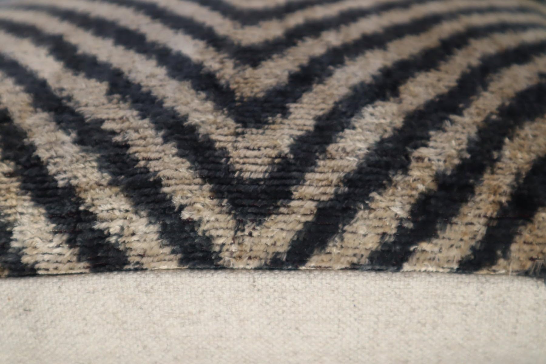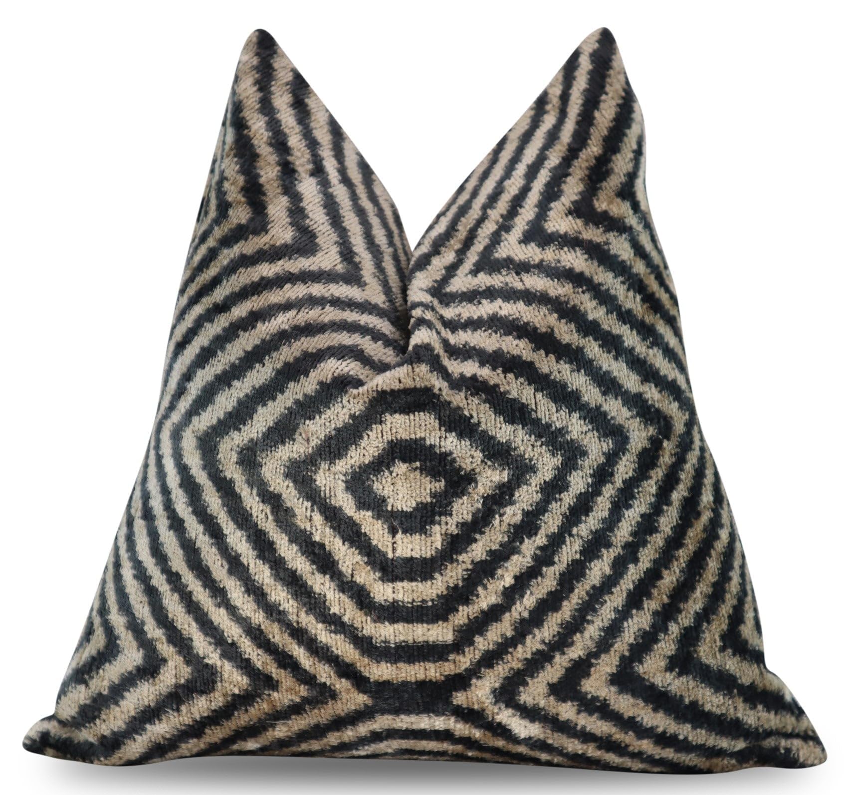 Elevate your living space with this luxurious handmade chevron velvet throw pillow. Featuring a striking black and ivory chevron pattern, this decorative accent pillow combines modern sophistication with bohemian charm.