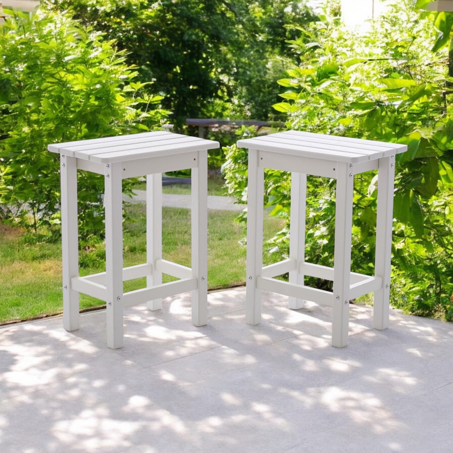 Premium high-density polyethylene (HDPE) outdoor bar stools designed for all-weather durability and modern style. These patio bar stools feature waterproof, UV-resistant, fade-resistant, and crack-resistant construction with realistic wood grain texture. The contemporary minimalist design fits seamlessly into any indoor or outdoor setting including patios, decks, balconies, poolside areas, kitchen counters, or home bars.
