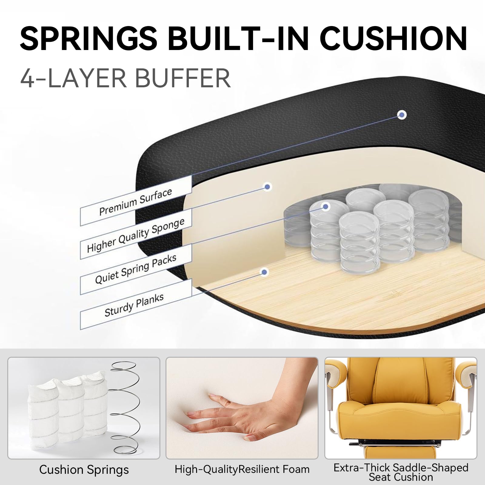 - Premium Spring Cushion: Industry-leading 6.1-inch thick seat cushion with individual pocket springs adapts to your weight and minimizes pressure on hips and tailbone
