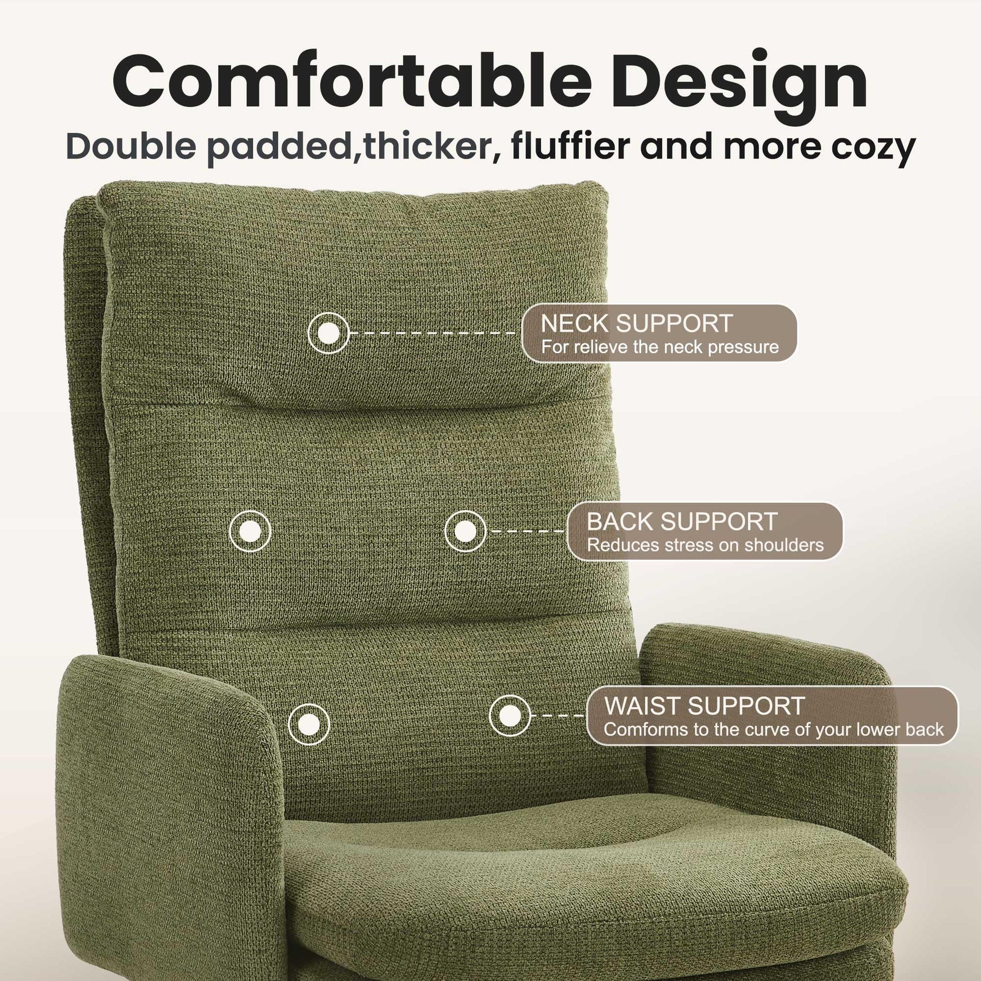 This upholstered desk chair combines style and functionality, featuring a plush cashmere finish in an elegant green color. The high-back design provides excellent lumbar support, while the adjustable armrests allow you to customize your seating position for optimal comfort.