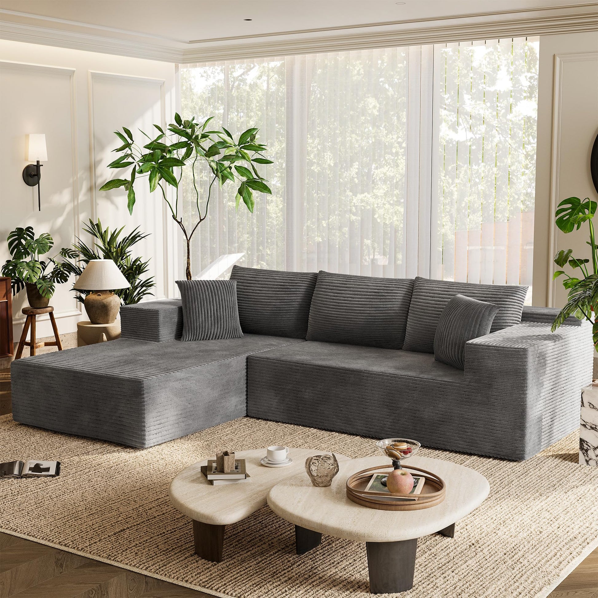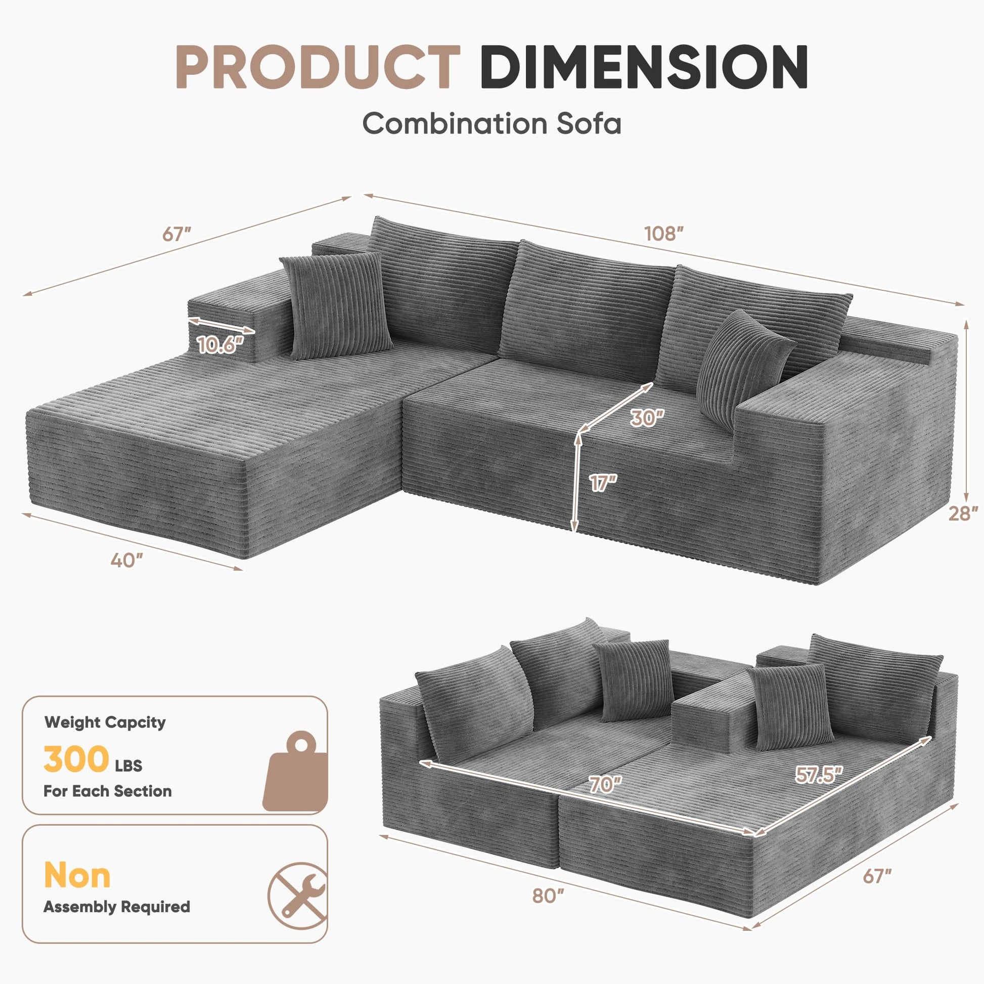 Homall 108" Modular Sectional Sofa, Boneless Couch with L-Shape Chaise, Cloud Couch with Deep Seat Upholstered, No Assembly Required for Living Room, Bedroom (Corduroy, Grey)