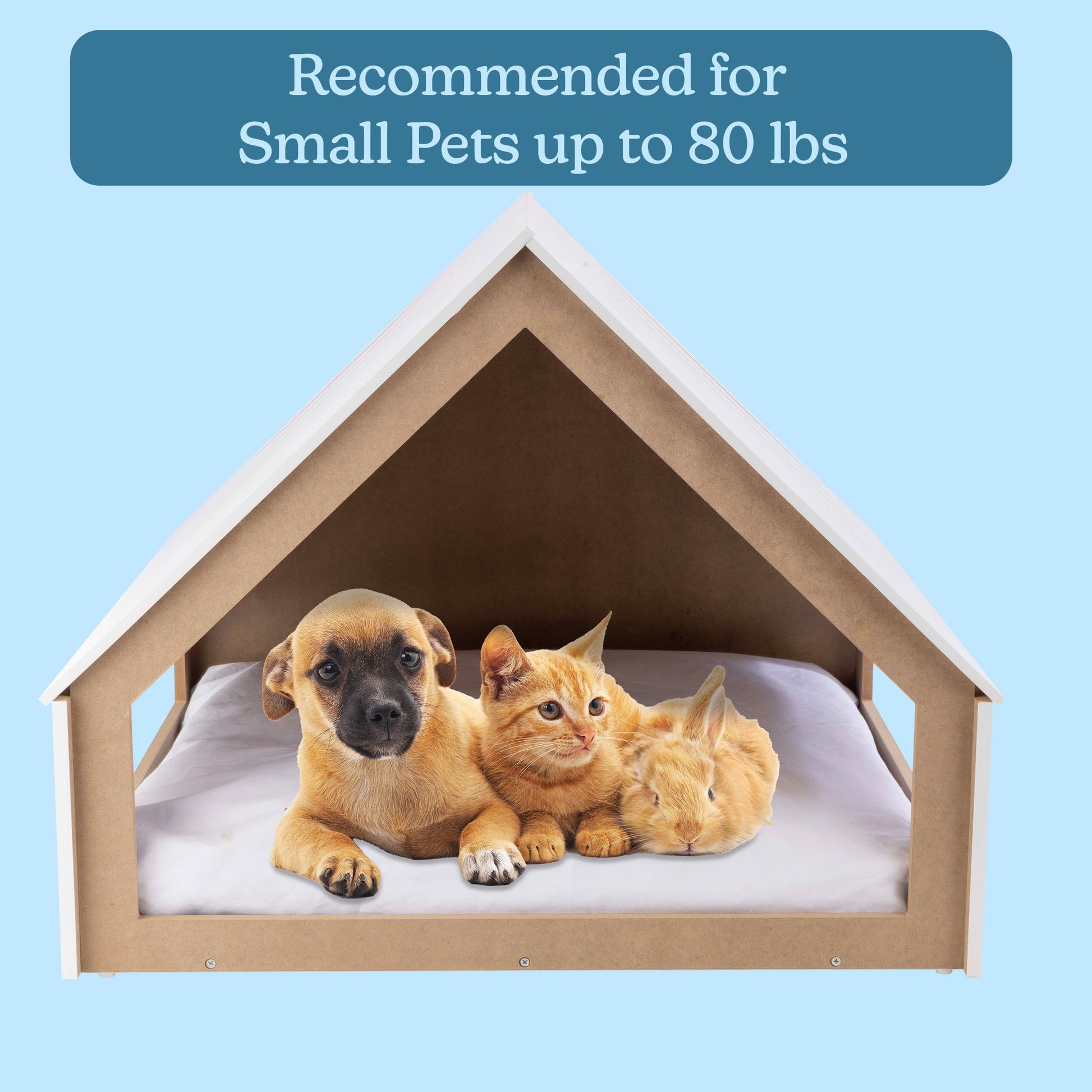 This indoor dog house bed combines comfort and style, providing your small to medium-sized pet with a cozy retreat. Crafted from durable wood with a clean white finish, it features integrated air vents for optimal airflow and includes a soft cushion for maximum comfort.
