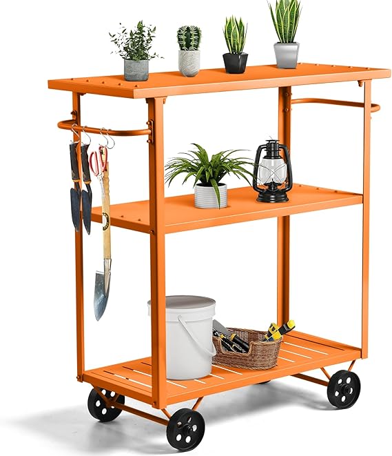 This industrial-style mobile serving cart combines functionality with rustic charm, perfect for modern homes, cafes, or offices. The sturdy 3-tier design provides ample storage and display space, while smooth-rolling wheels ensure easy mobility throughout your space.