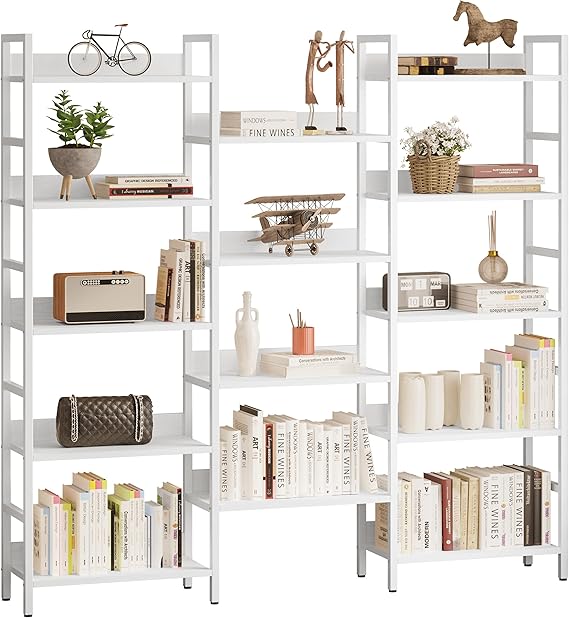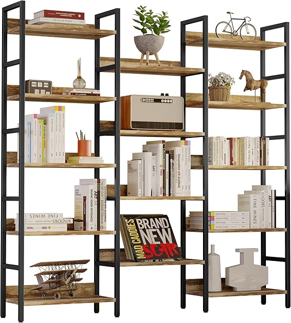 This industrial-style bookshelf features 14 spacious shelves designed to maximize vertical storage while keeping your essentials organized. The triple-wide design offers ample display and storage space for books, decor, and everyday items across your living room, bedroom, study, or office.
