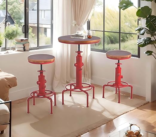 Transform your space with this vintage industrial pub table and stool set. Featuring height-adjustable functionality and authentic steampunk styling, this set brings repurposed industrial charm to your bar area, kitchen, or dining space.