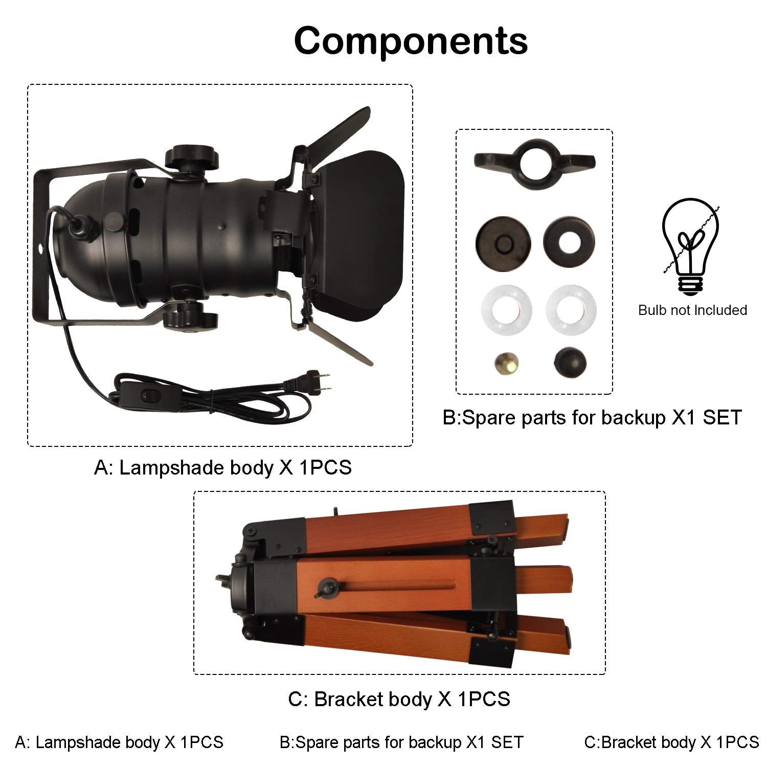 Industrial Tripod Floor Lamp Vintage Wood Cinema Searchlight