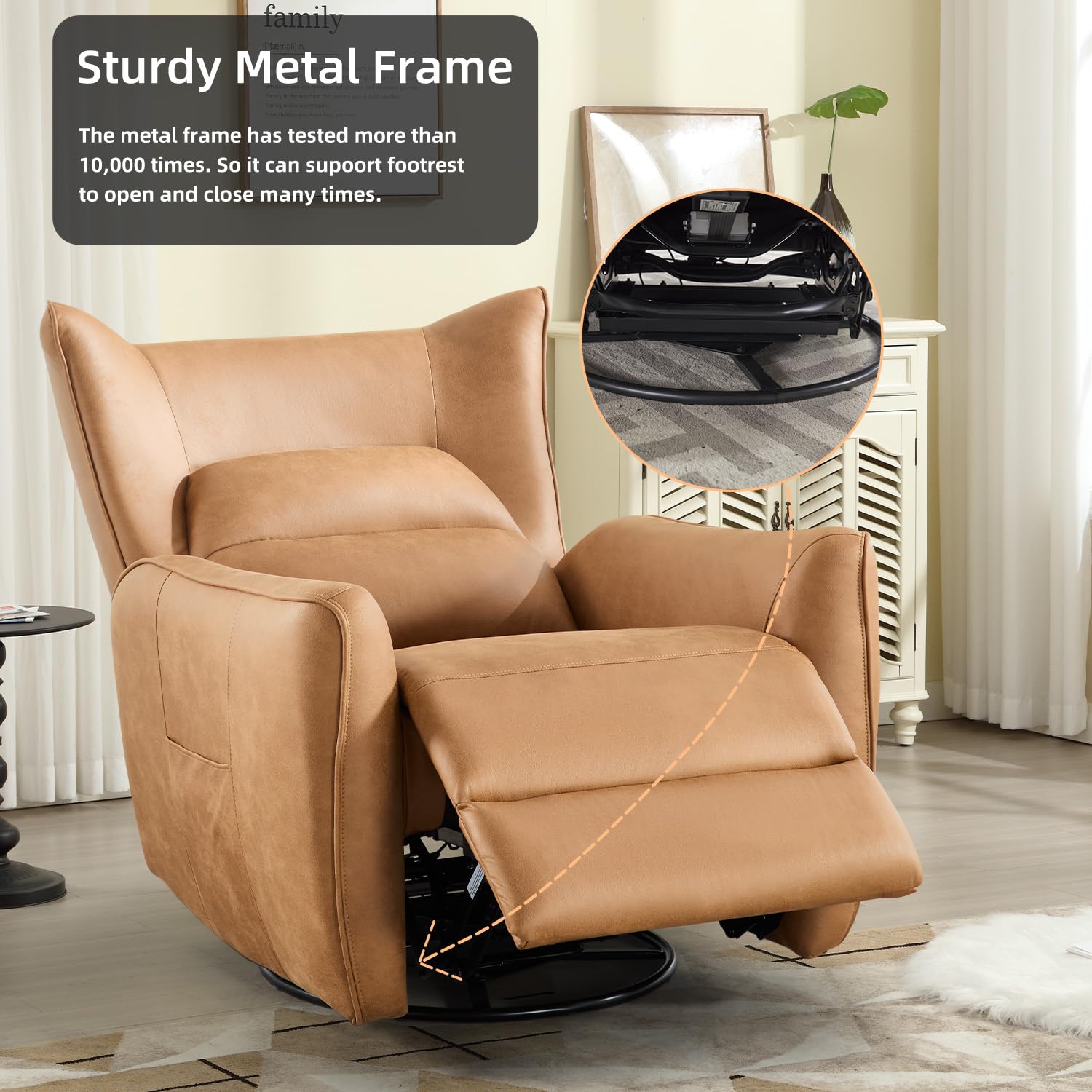 - Power Recliner and Swivel Glider-This recliner offers the convenience of power reclining, allowing you to easily adjust the seating position at the touch of a button. The swivel glider feature enables smooth rotation and gentle rocking motions, enhancing relaxation and versatility.