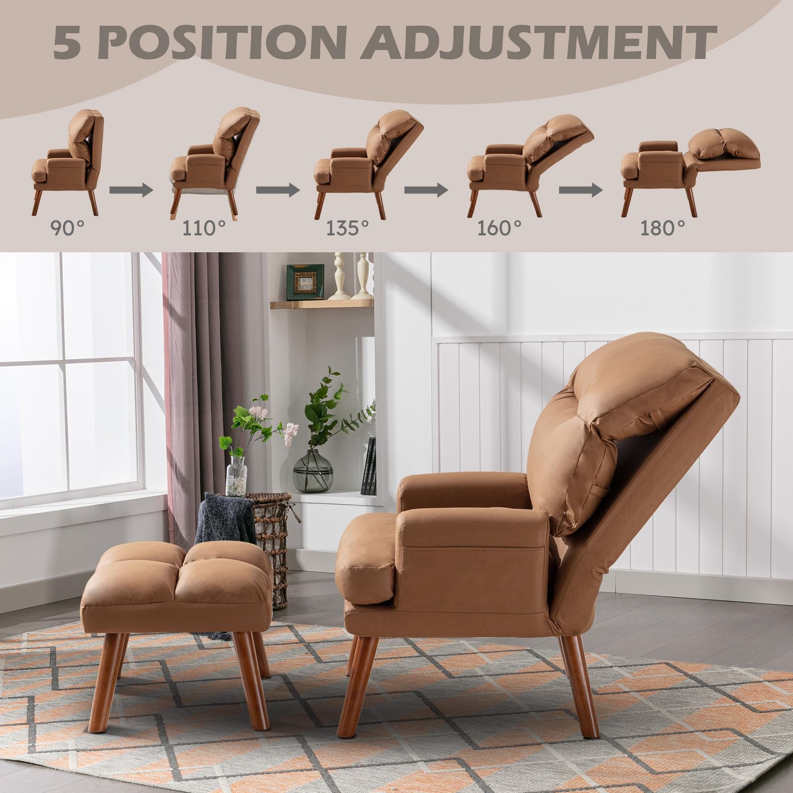 - Adjustable Backrest - This accent chair features an adjustable backrest with 5 stages, ranging from 90° to 180°. Find the perfect position to sit, recline, and relax after a long day of work or reading. Enjoy the comfort and versatility this recliner chair brings.