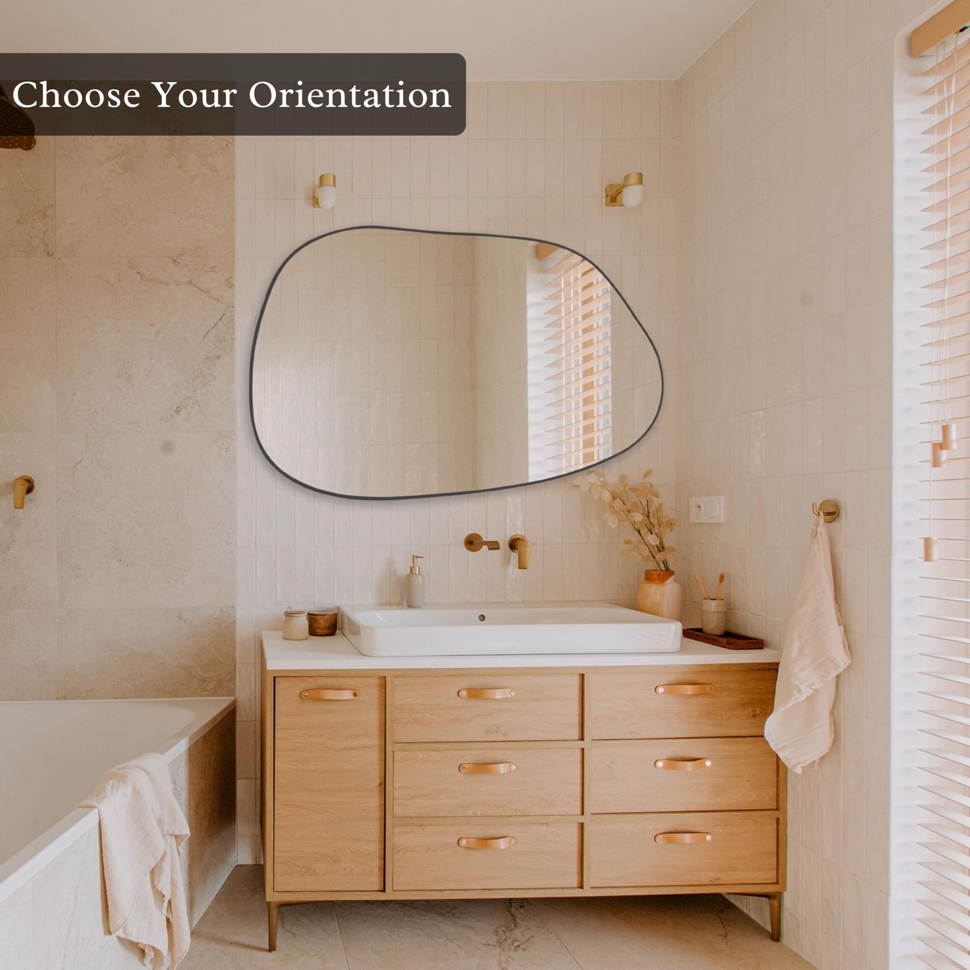 This modern decorative mirror features a sleek black frame that complements various interior styles, from minimalist to industrial. Perfect for creating a focal point in your bathroom, bedroom, living room, or entryway.