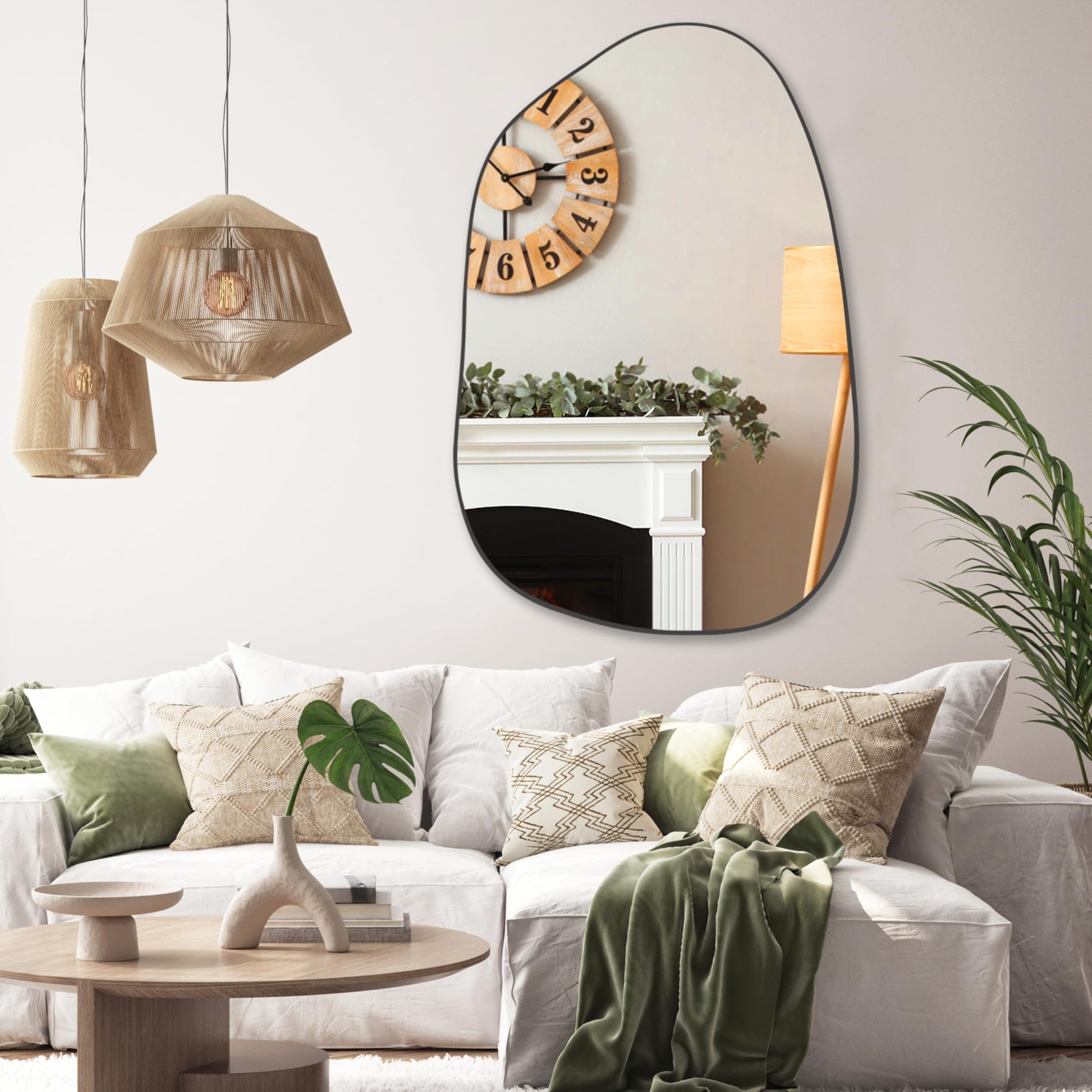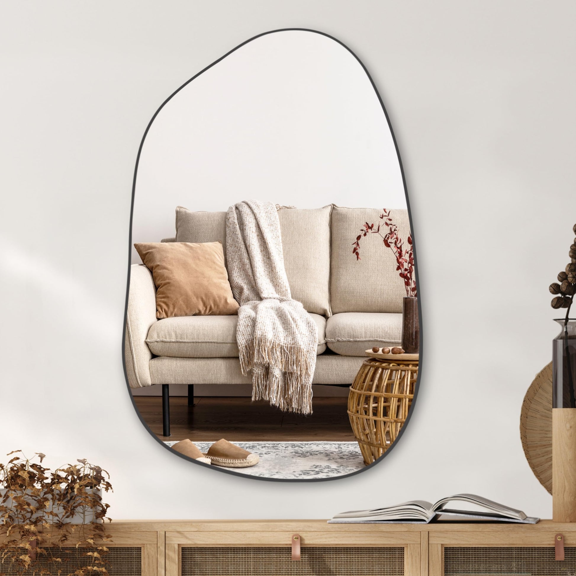 Transform your space with this striking irregular asymmetrical wall mirror that adds contemporary elegance to any room. The unique geometric design creates visual interest while providing functional reflection for your daily routine.