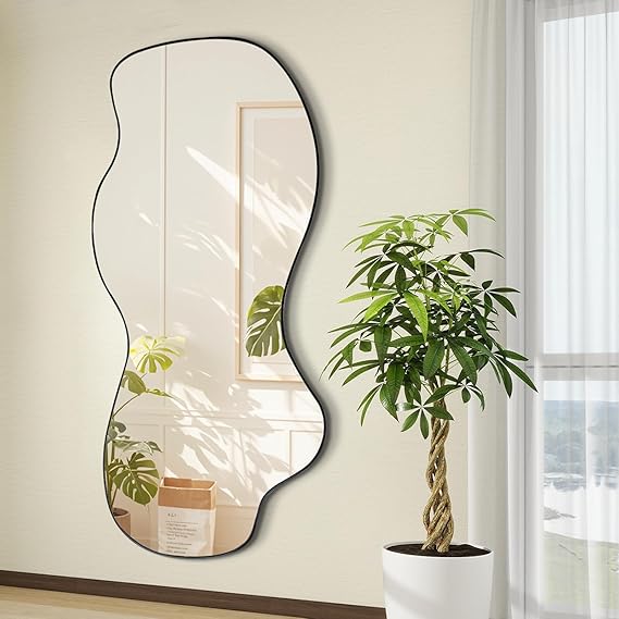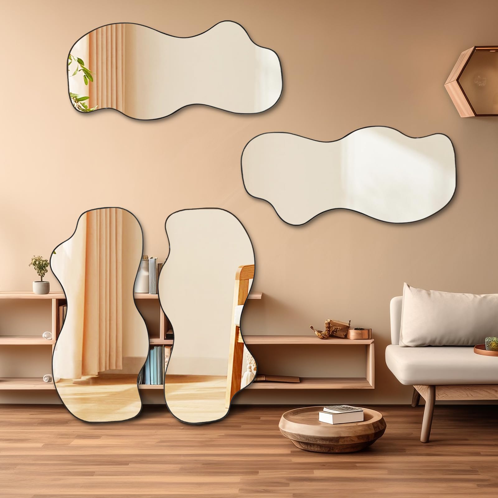 This irregular asymmetrical wall mirror combines modern design with functional elegance. The frameless construction and unique shape create a striking focal point that enhances any room while reflecting light to visually expand your space.