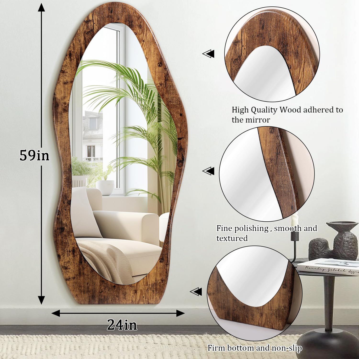 Irregular Full Length Mirror 59" x 24" Dark Brown