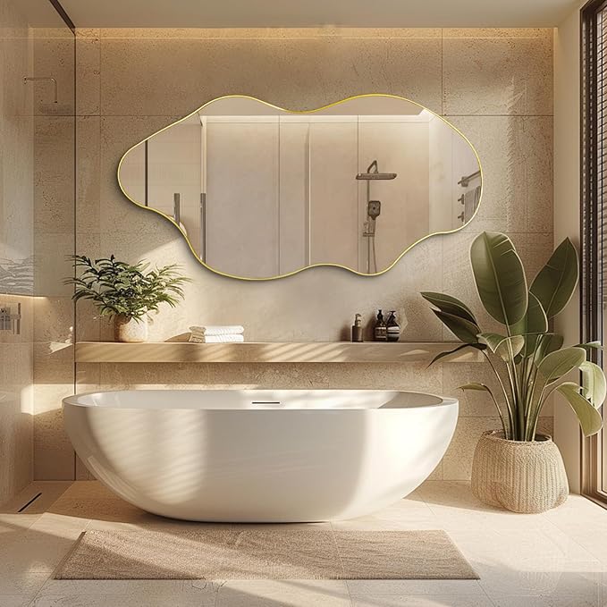 This modern mirror serves as both a functional piece and an artistic statement, elevating your interior design with its unique irregular form and generous proportions.