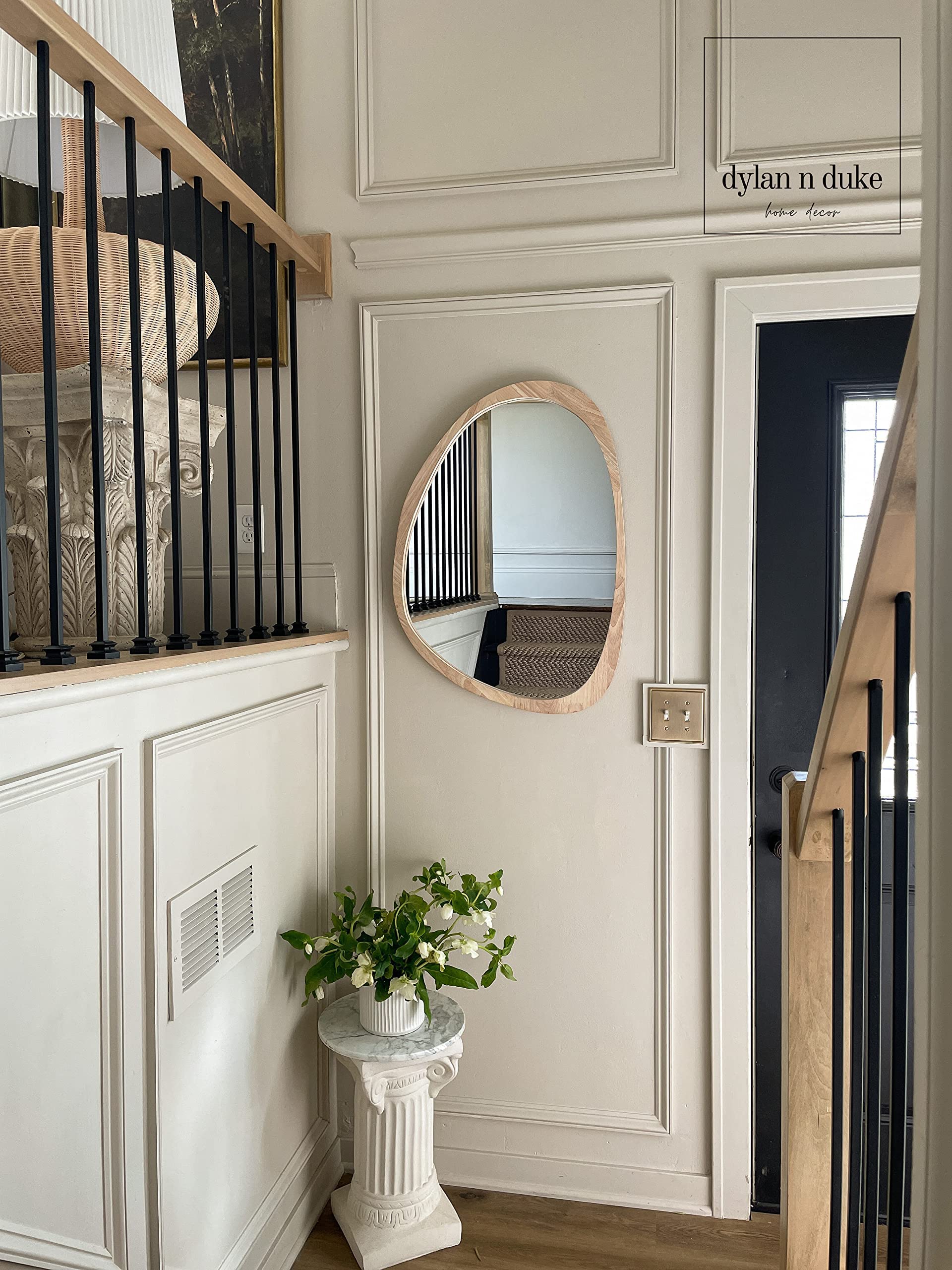 This large asymmetrical mirror combines functionality with artistic design, making it more than just a reflective surface—it's a piece of wall art that enhances your home's aesthetic.