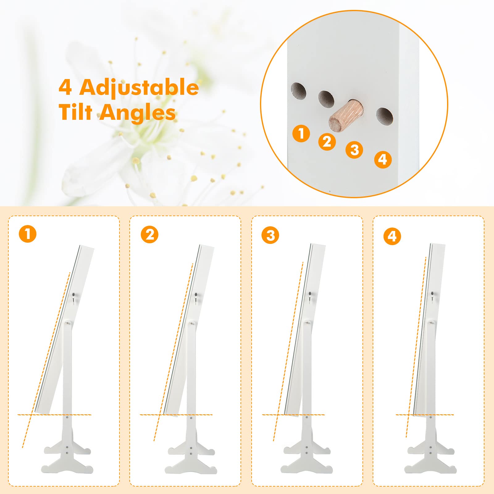 The built-in full-length mirror features 6 LED lights that provide clear, bright illumination for applying makeup and selecting jewelry. The mirror adjusts to 4 different angles, ensuring you always have the perfect view.