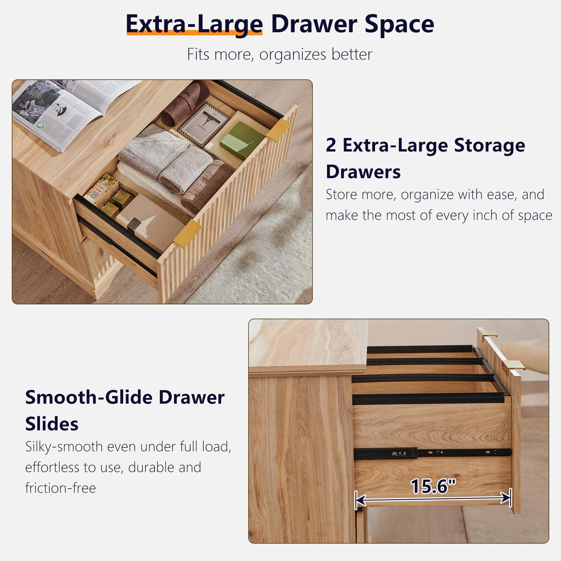 - Fluted Design: Elevate your decor with this contemporary office cabinet, featuring a sleek fluted design that adds striking depth and tactile sophistication. The rich woodgrain texture pairs seamlessly with chic metal handles, blending modern elegance with durable functionality. Its gently curved profile and recessed curved base ensure stability, making this file cabinets for home office suitable as a nightstand, side table, or sideboard—proving style and utility can coexist in a filing cabinet.