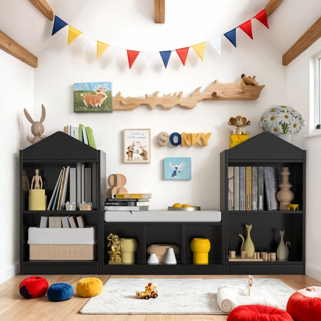 Transform your child's space into an organized reading haven with this multifunctional bookshelf featuring a built-in reading nook and ample storage. Designed specifically for children, this versatile organizer combines a cozy seating area with practical storage solutions to keep books, toys, and puzzles neatly arranged and easily accessible.