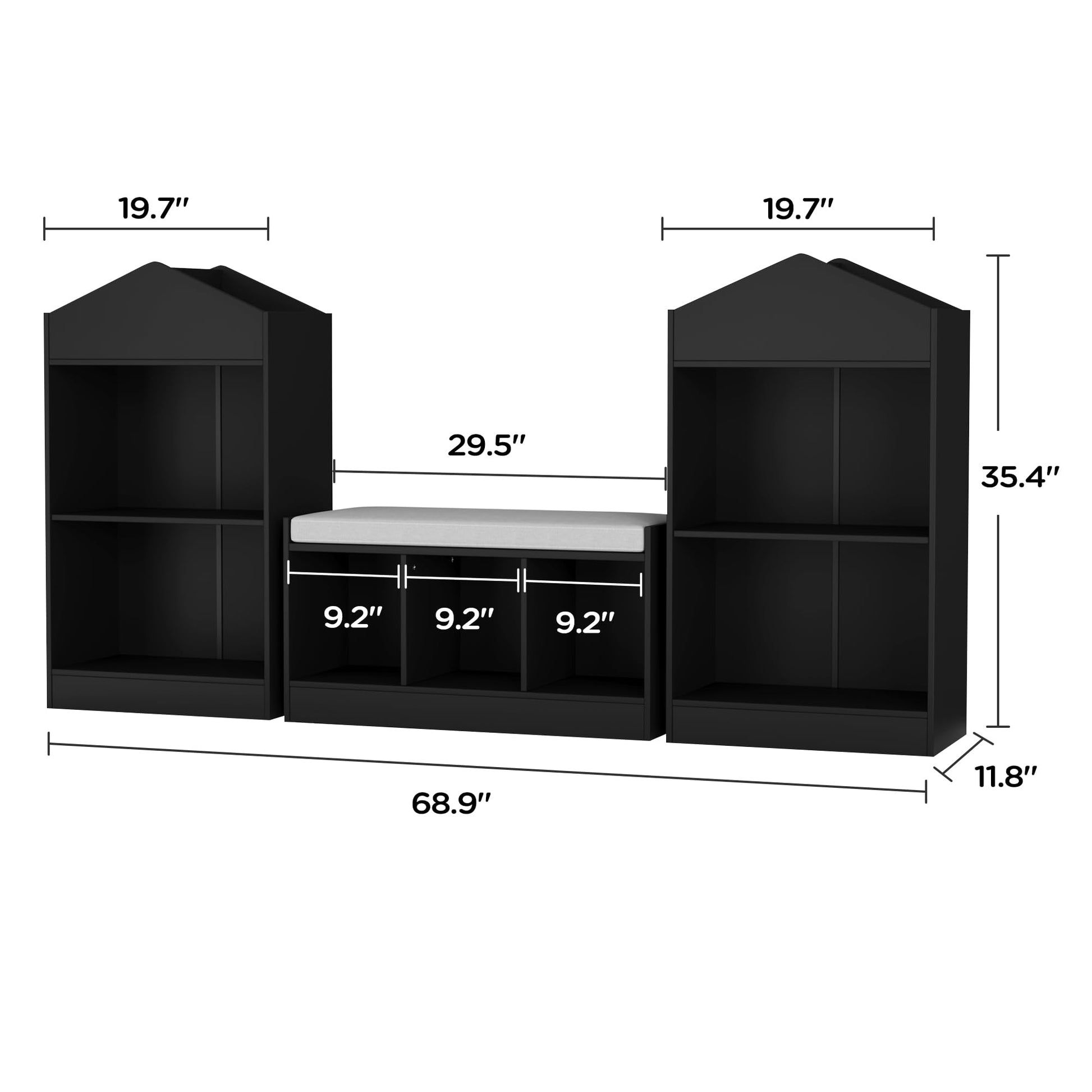 | Storage Features | 2 top bookshelves, 7 storage cubbies, reading nook with seat |