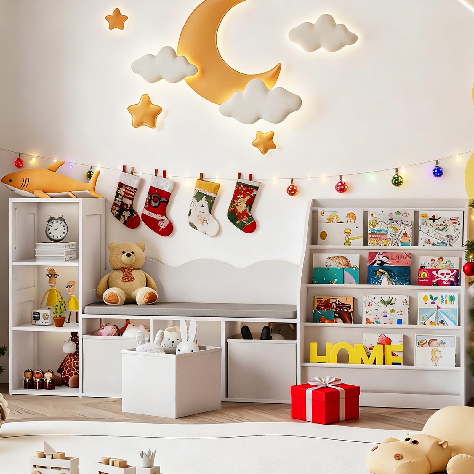 Kids Bookshelf with Reading Nook and Toy Storage
