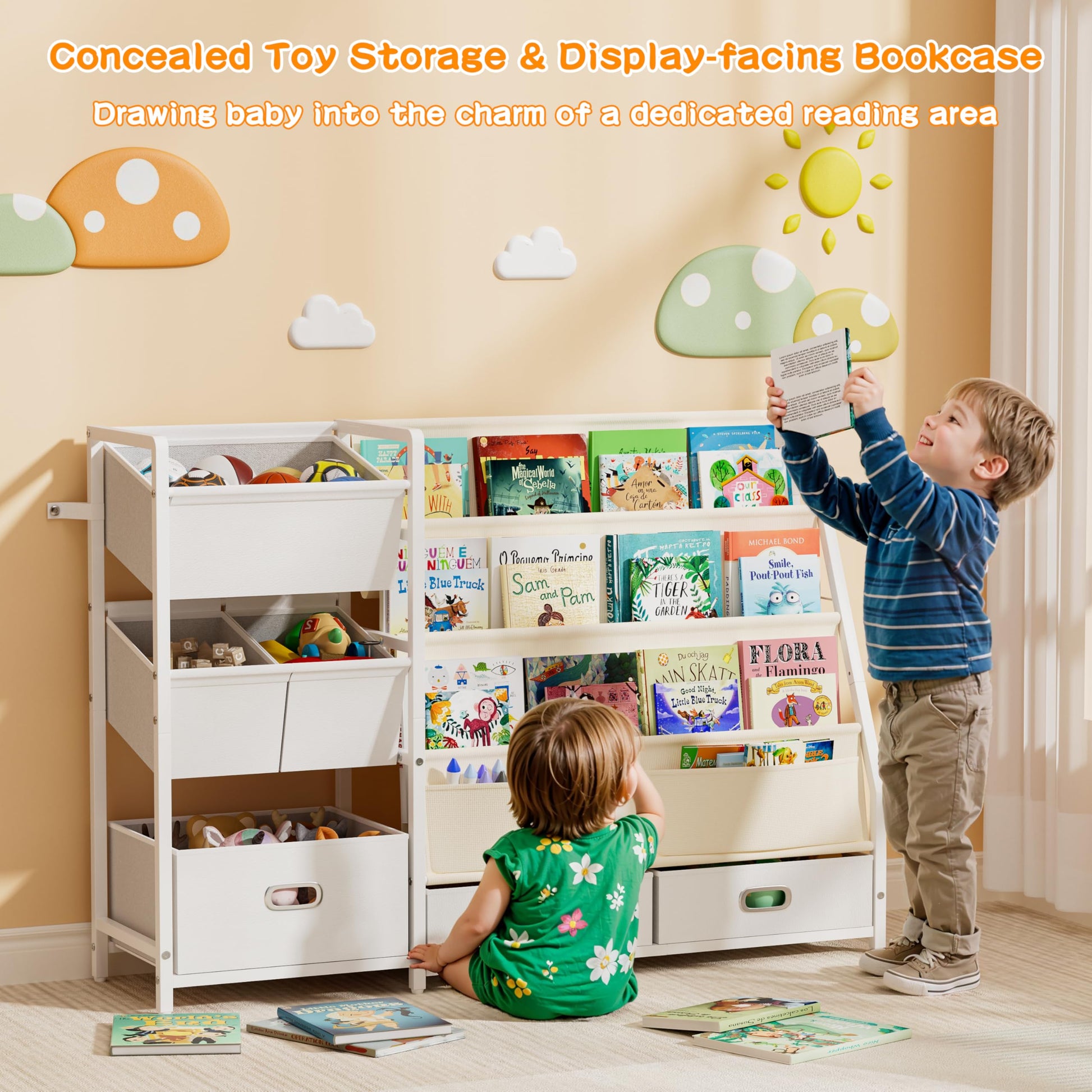 - Forward-Facing Book Display: Makes it simple for toddlers to recognize and independently choose their books, with large capacity for reading books, coloring books, comic books, and picture books