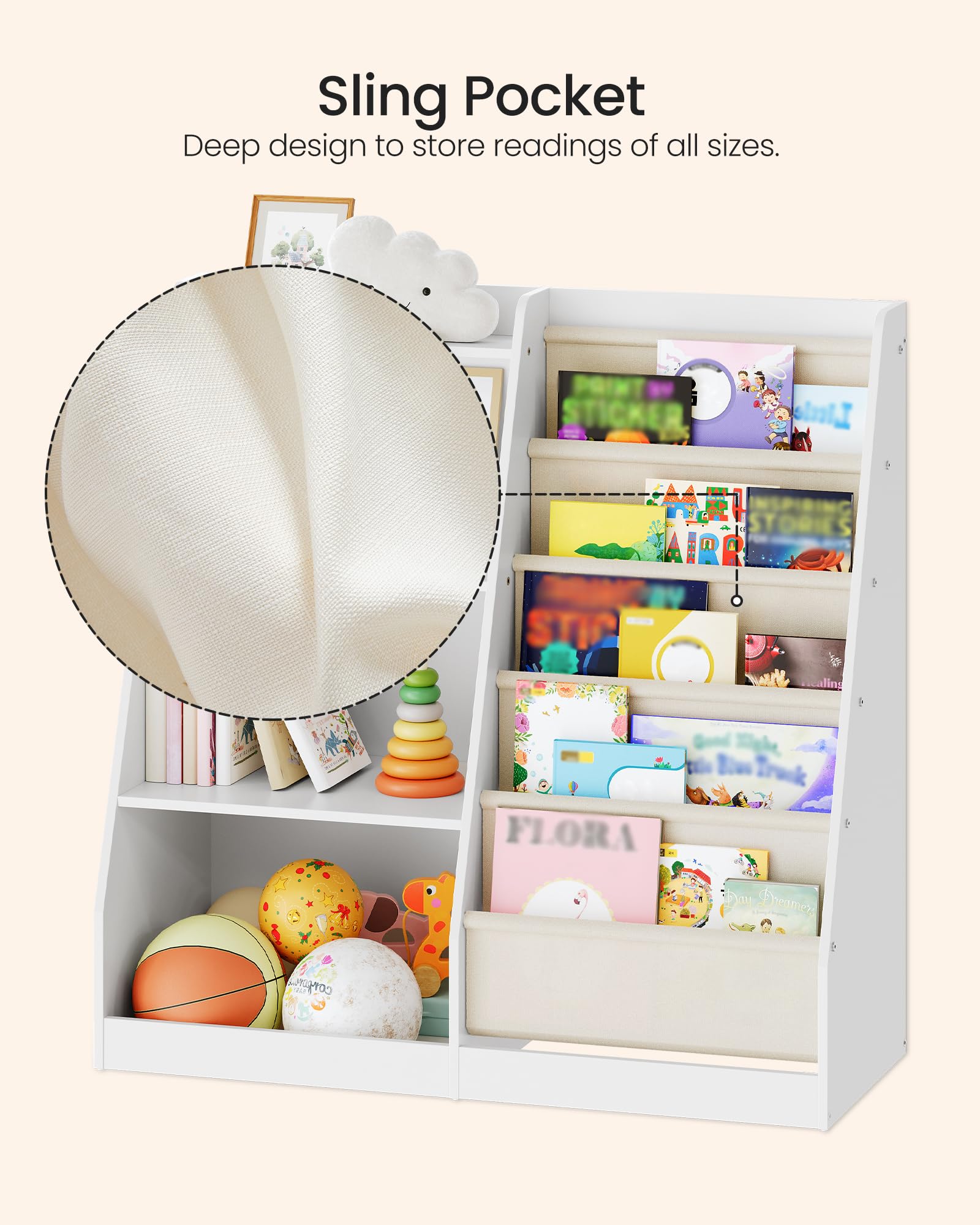 This multi-functional storage solution helps develop organizational skills while keeping books and toys accessible and tidy. The fabric sling design is gentle on little hands and perfect for displaying favorite books with covers facing forward.