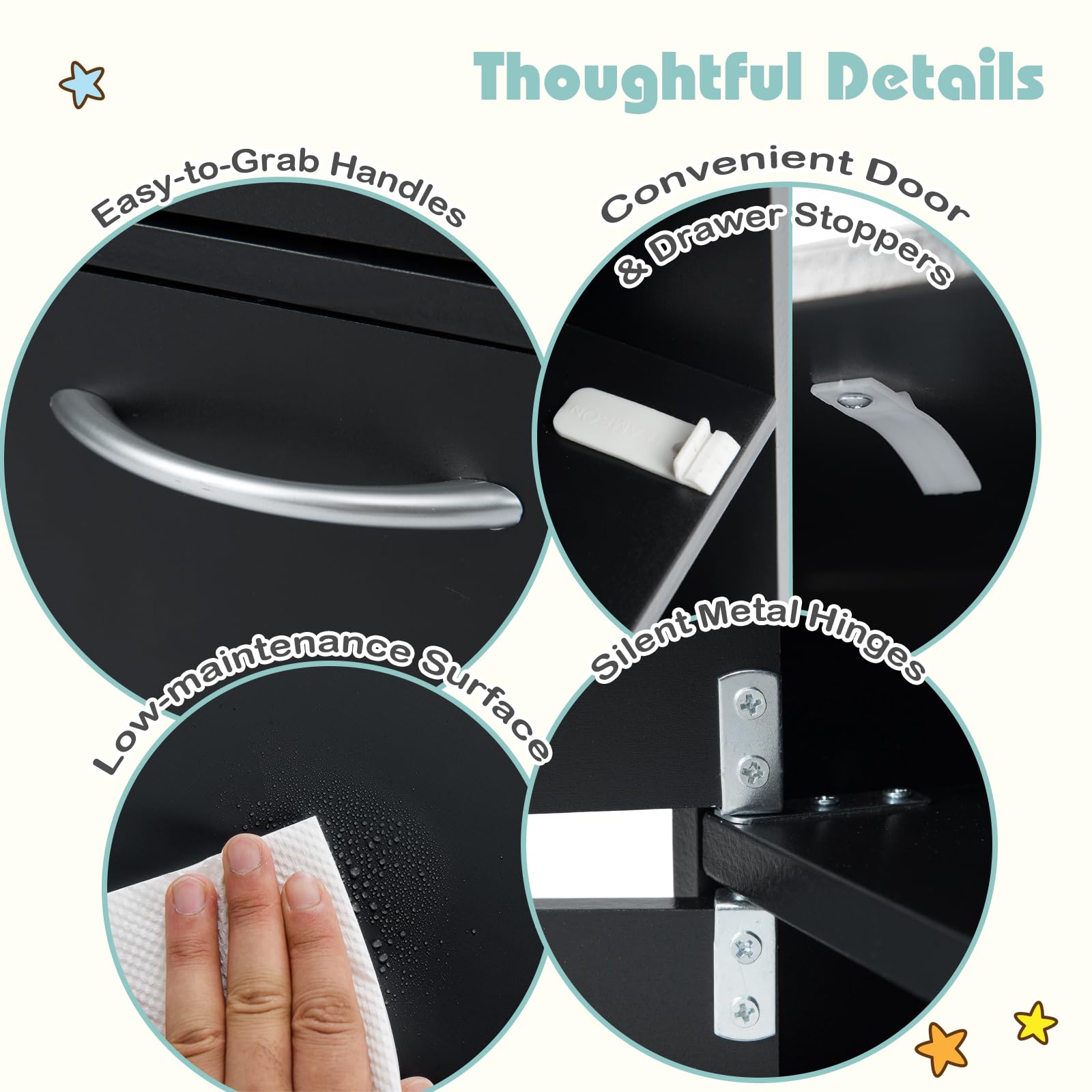 The ergonomic design promotes proper posture during homework and creative activities. The sturdy wooden construction ensures long-lasting durability, while the sleek black finish complements any bedroom or playroom décor.