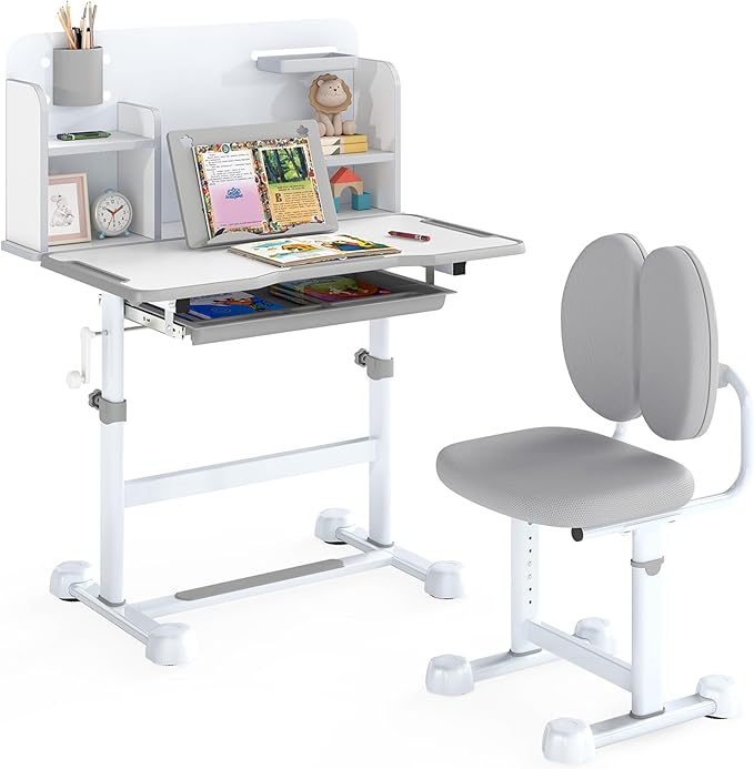 Transform your child's study space with this ergonomic height-adjustable desk and chair set designed specifically for toddlers and young learners. This comprehensive furniture solution promotes proper posture and creates an organized, comfortable learning environment.