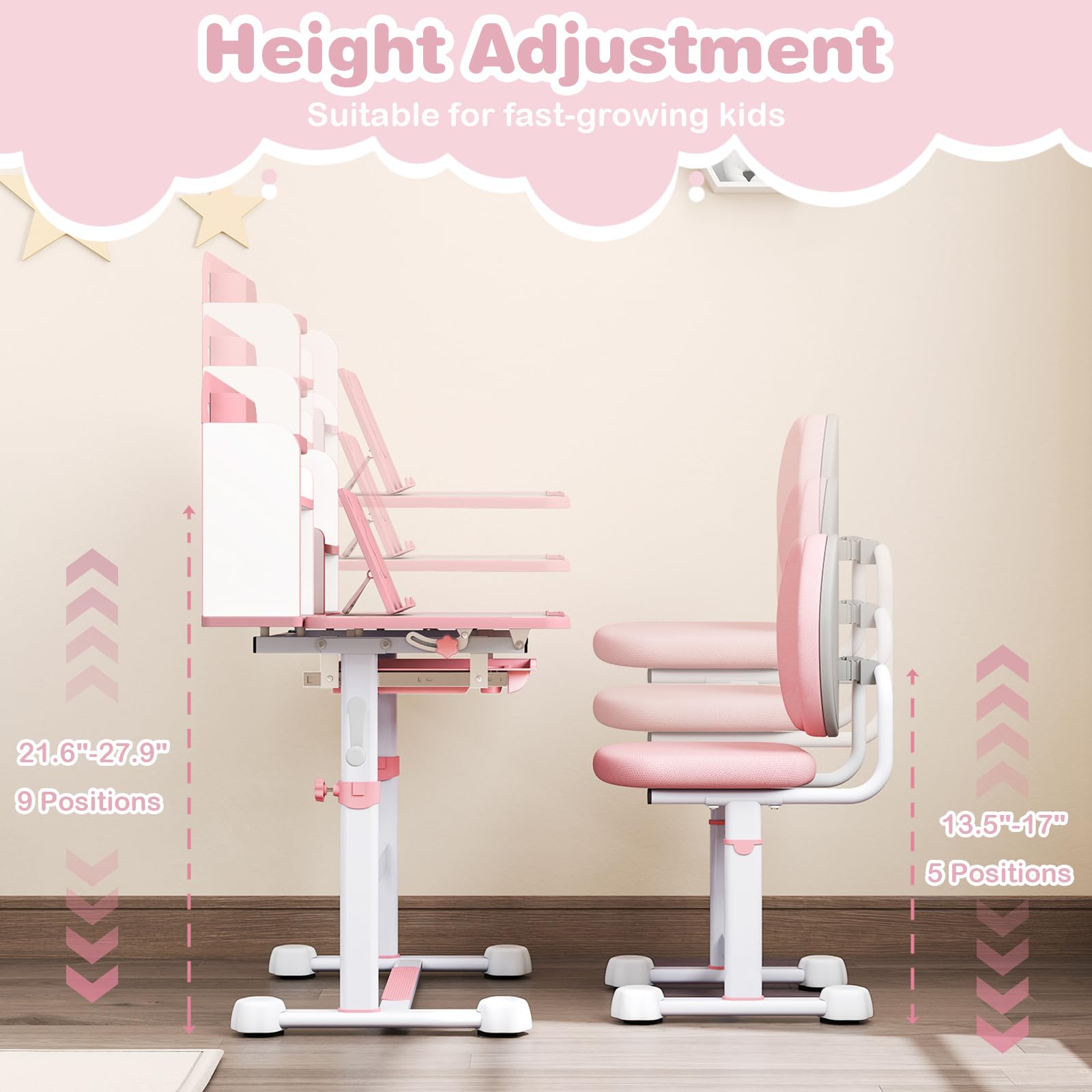 - Height-adjustable design grows with your child