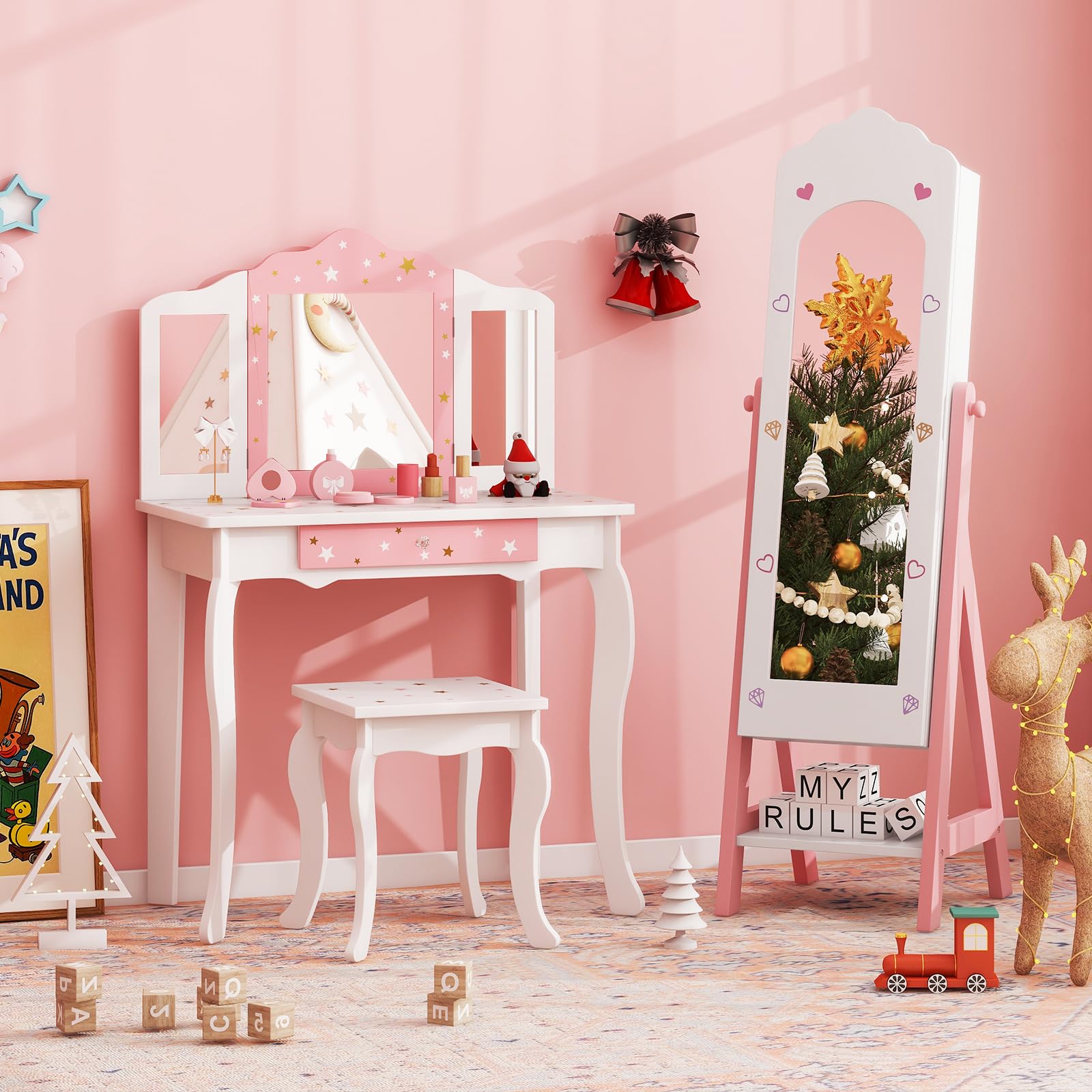 Kids Jewelry Armoire Cabinet with Full-Length Mirror
