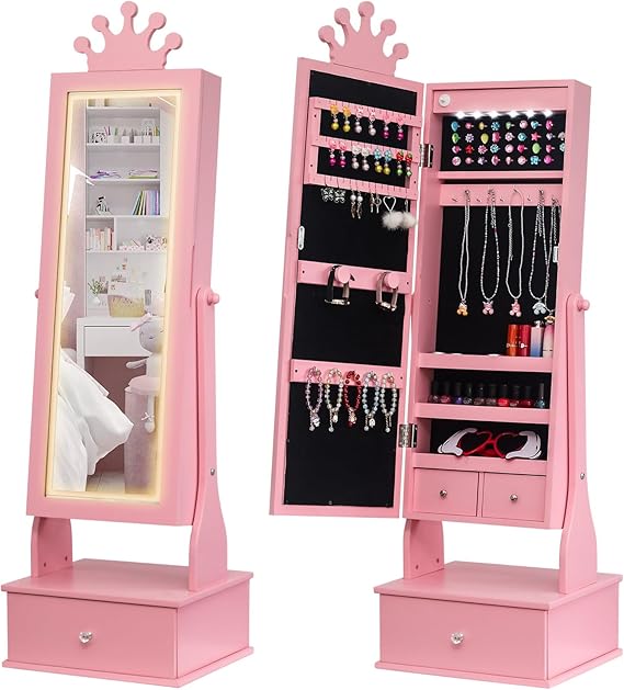Kids Jewelry Armoire with LED Light and Full Length Mirror