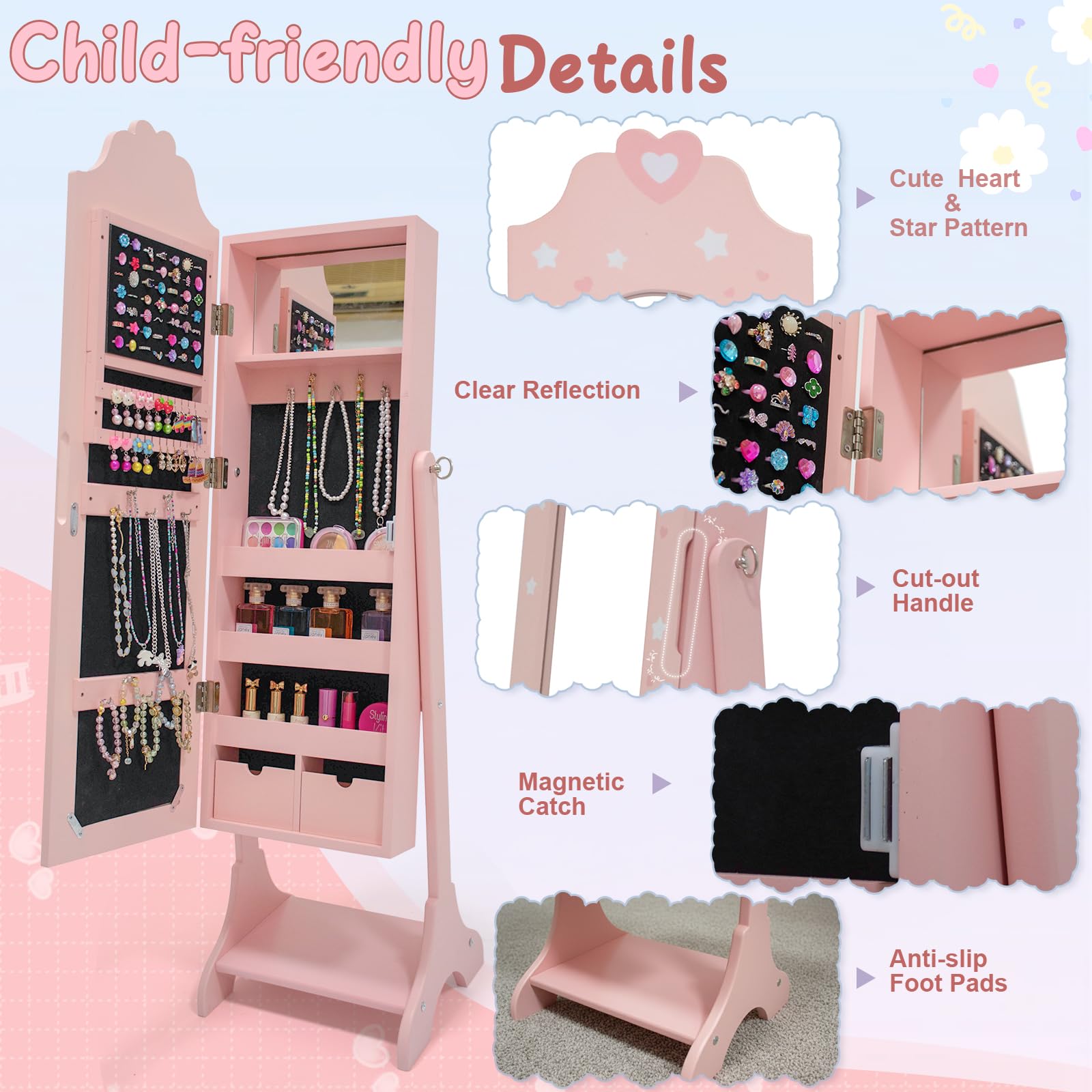 Kids Jewelry Cabinet with Full-Screen Mirror