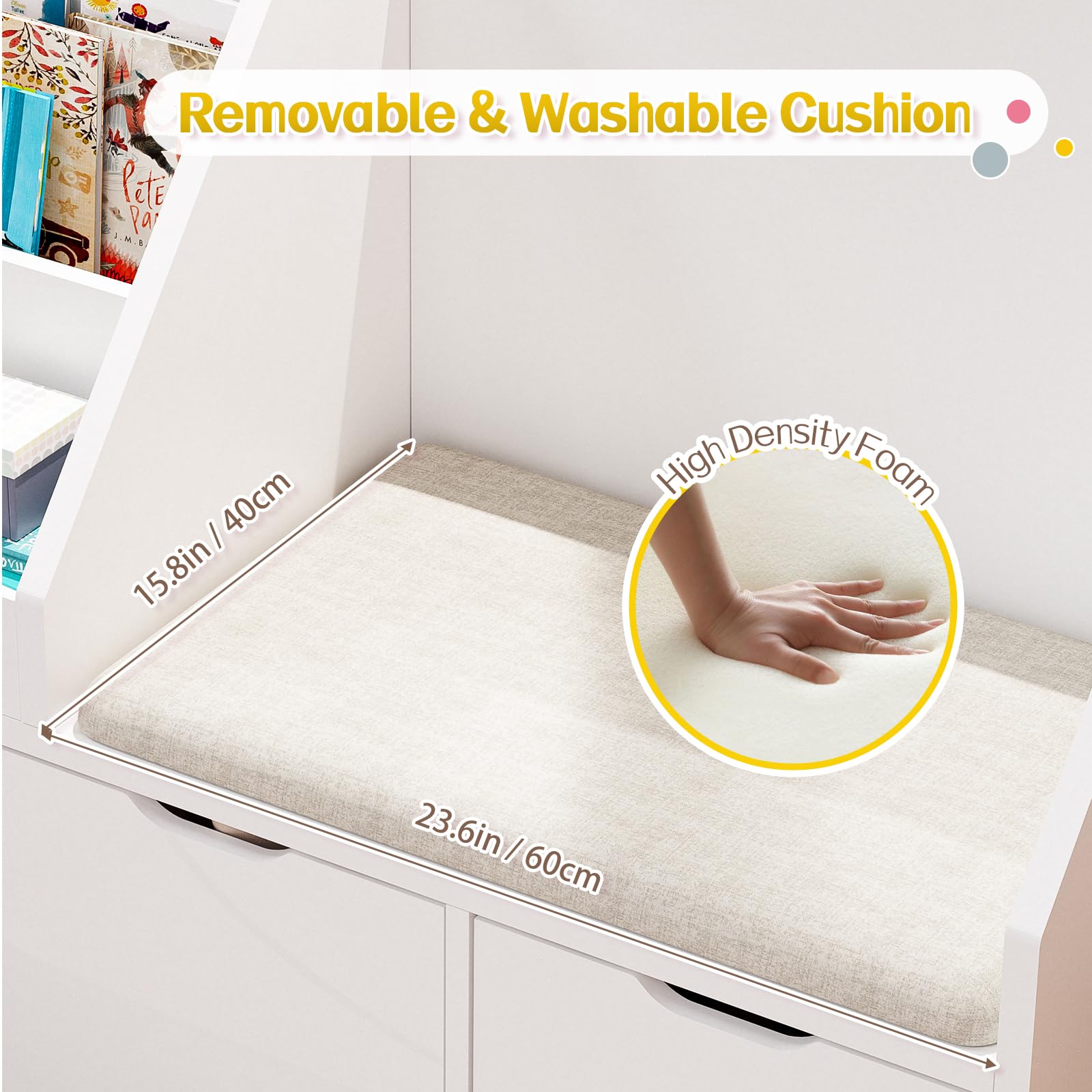 - 3-in-1 Design: Combines bookshelf, storage drawers, and cushioned seating in one space-saving unit